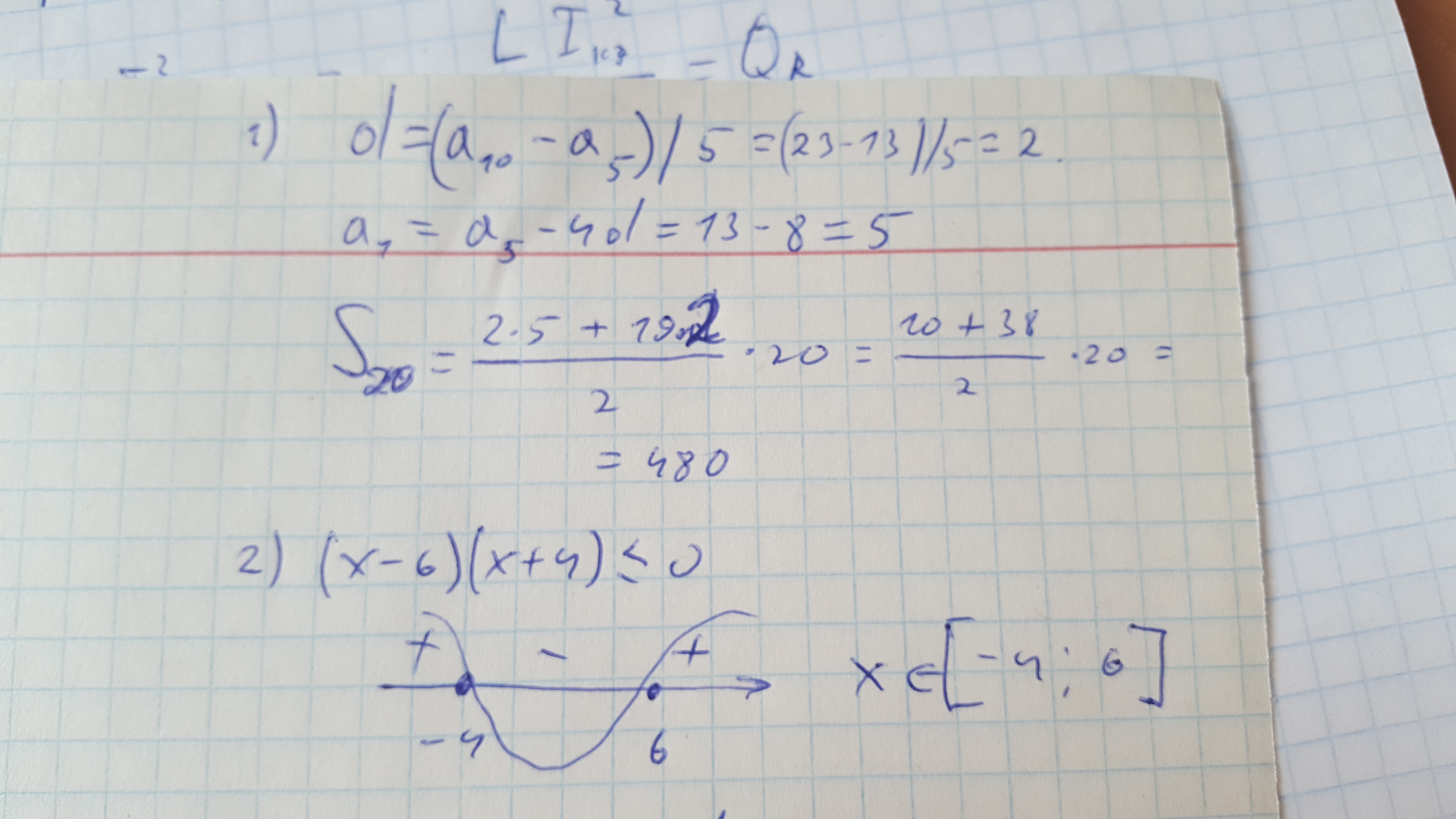 2)решите неравенство: (х-6)*(х+4)<или равно 0