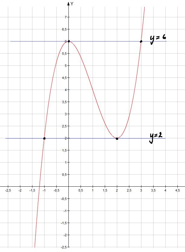 2. при каких значениях параметра а уравнение y=x^3-3x^2+6=а имеет два корня?