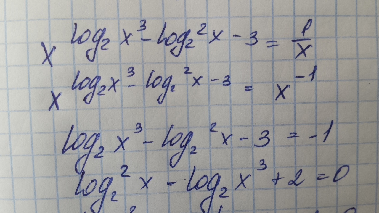 log(2)(x^3) - log(2)(x)^2 -3 = - 1