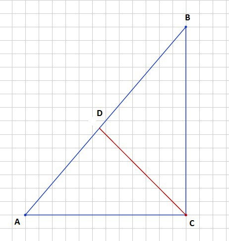 Гипотенуза АВ по теореме Пифагора равна