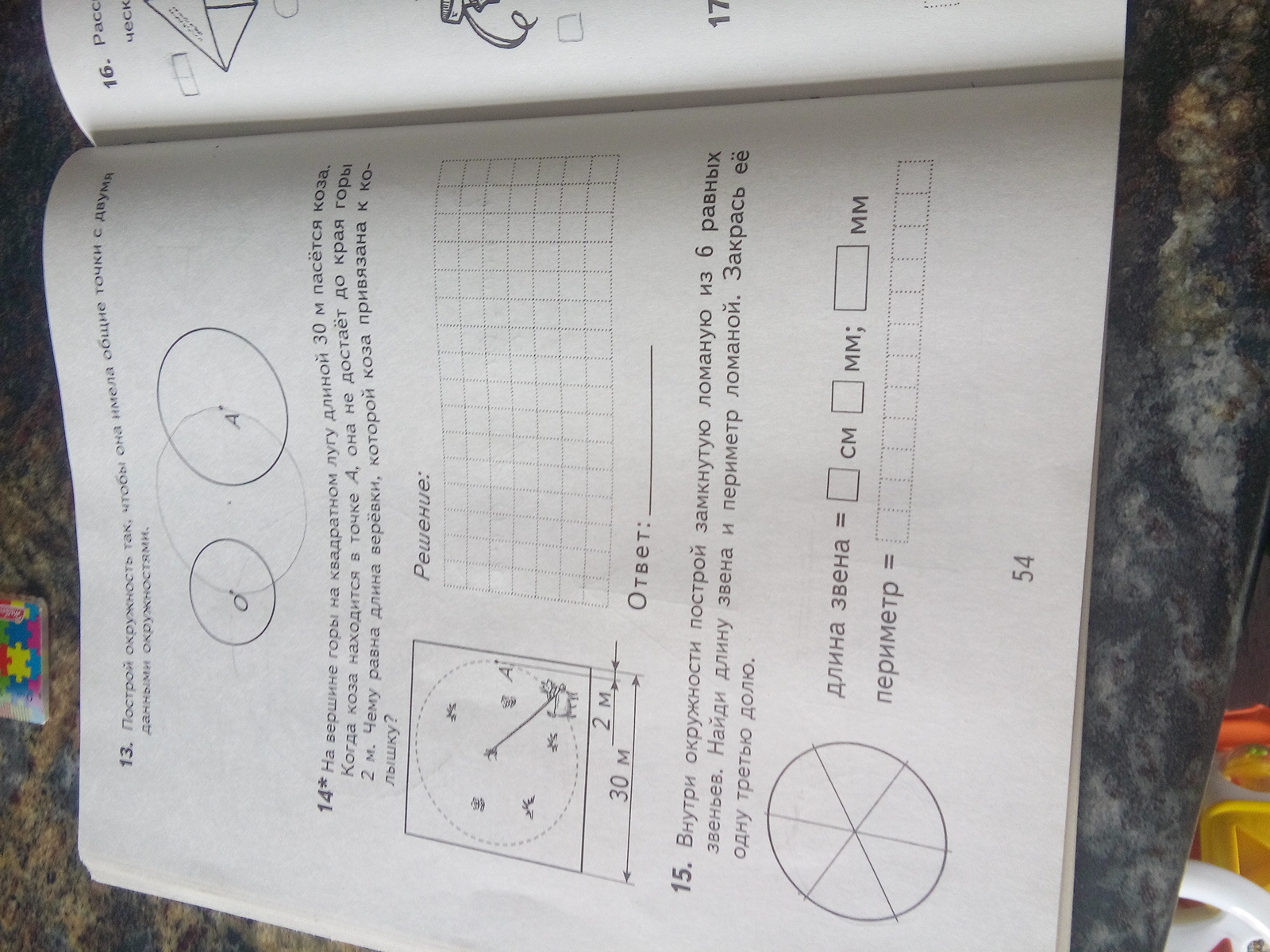 30:2 = 15 (радиус до края горы от центра,где привязана коза)