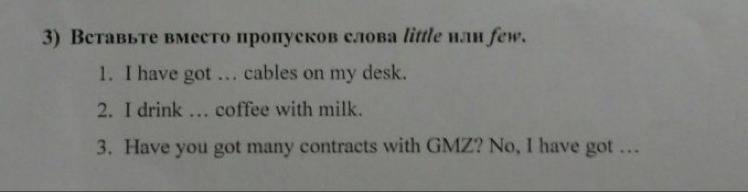 Few употребляется с исчисляемыми существительными, little - с неисчисляемыми.