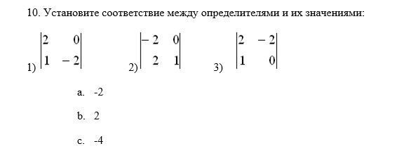 3)![left[begin{array}{cc}2&-2\1&0end{array}right] =2*0-1*(-2)=2 left[begin{array}{cc}2&-2\1&0end{array}right] =2*0-1*(-2)=2](https://tex.z-dn.net/?f=++left%5Bbegin%7Barray%7D%7Bcc%7D2%26amp%3B-2%5C1%26amp%3B0end%7Barray%7Dright%5D+%3D2%2A0-1%2A%28-2%29%3D2)