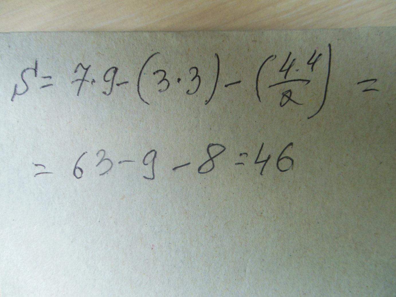 2. Вычитаем из общей площади площадь маленького квадрата: 63-3*3=54