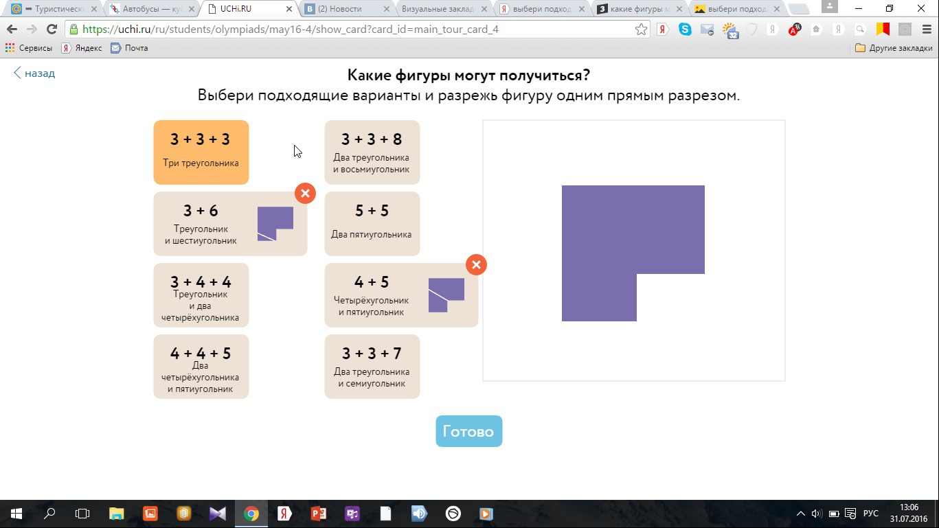 помогите,пожалуйста. Задание на картинке. нужно выбрать подходящие варианты и разрезать фигуру одним прямым разрезом