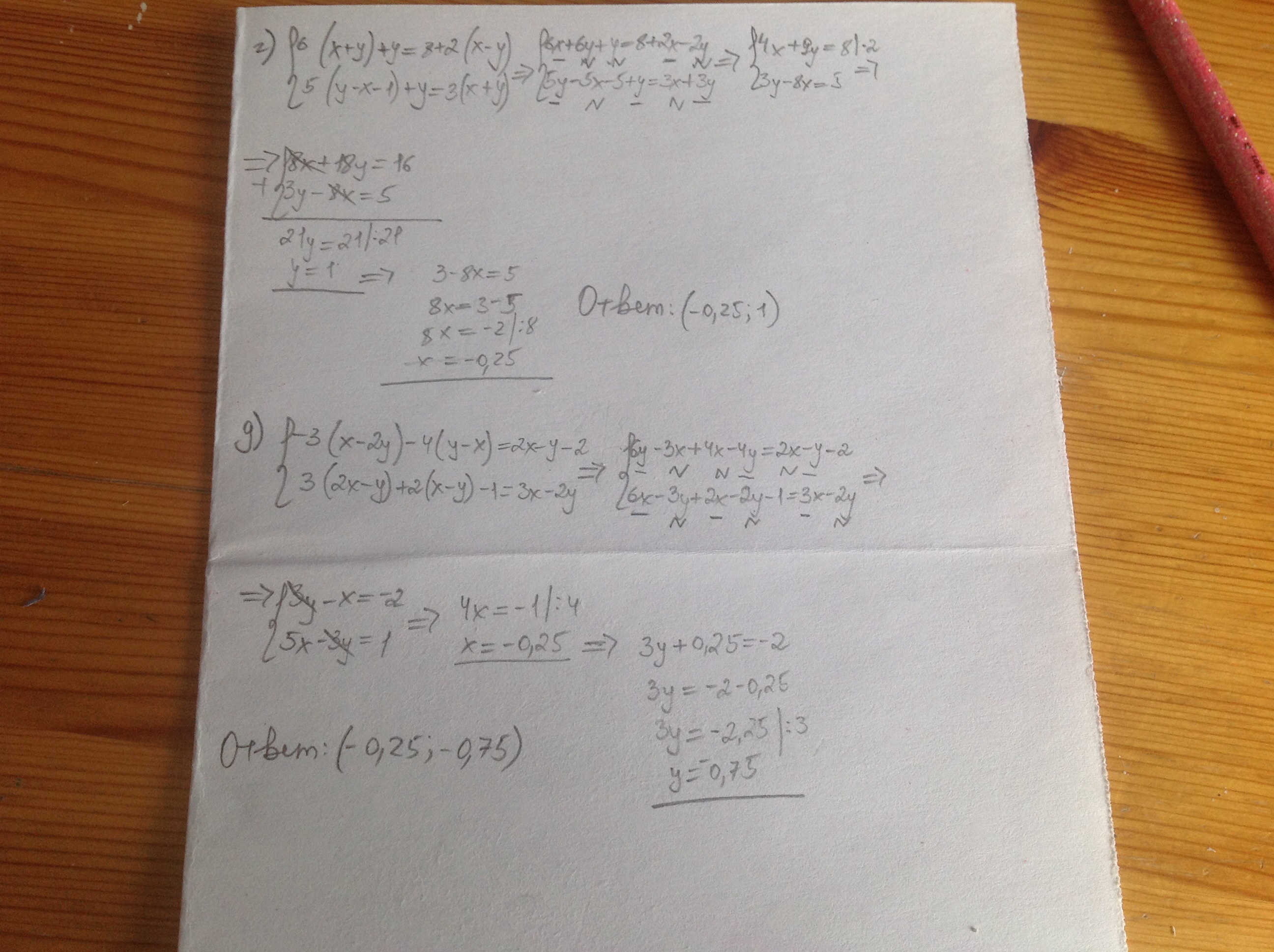 Решала с помощью "МЕТОД-а АЛГЕБРАИЧЕСКОГО СЛОЖЕНИЯ", есть ещё 2 способа, но здесь сложением удобнее))