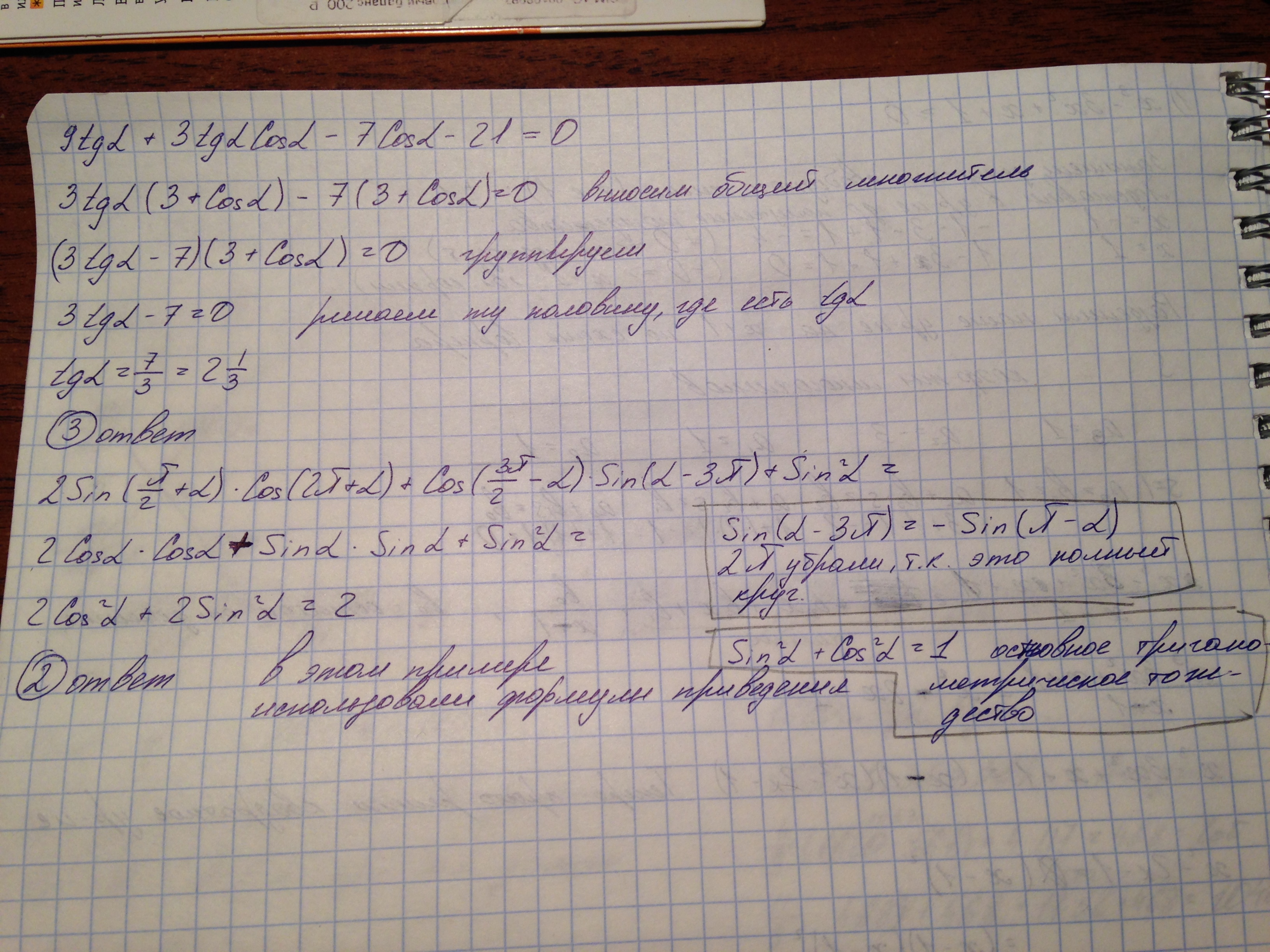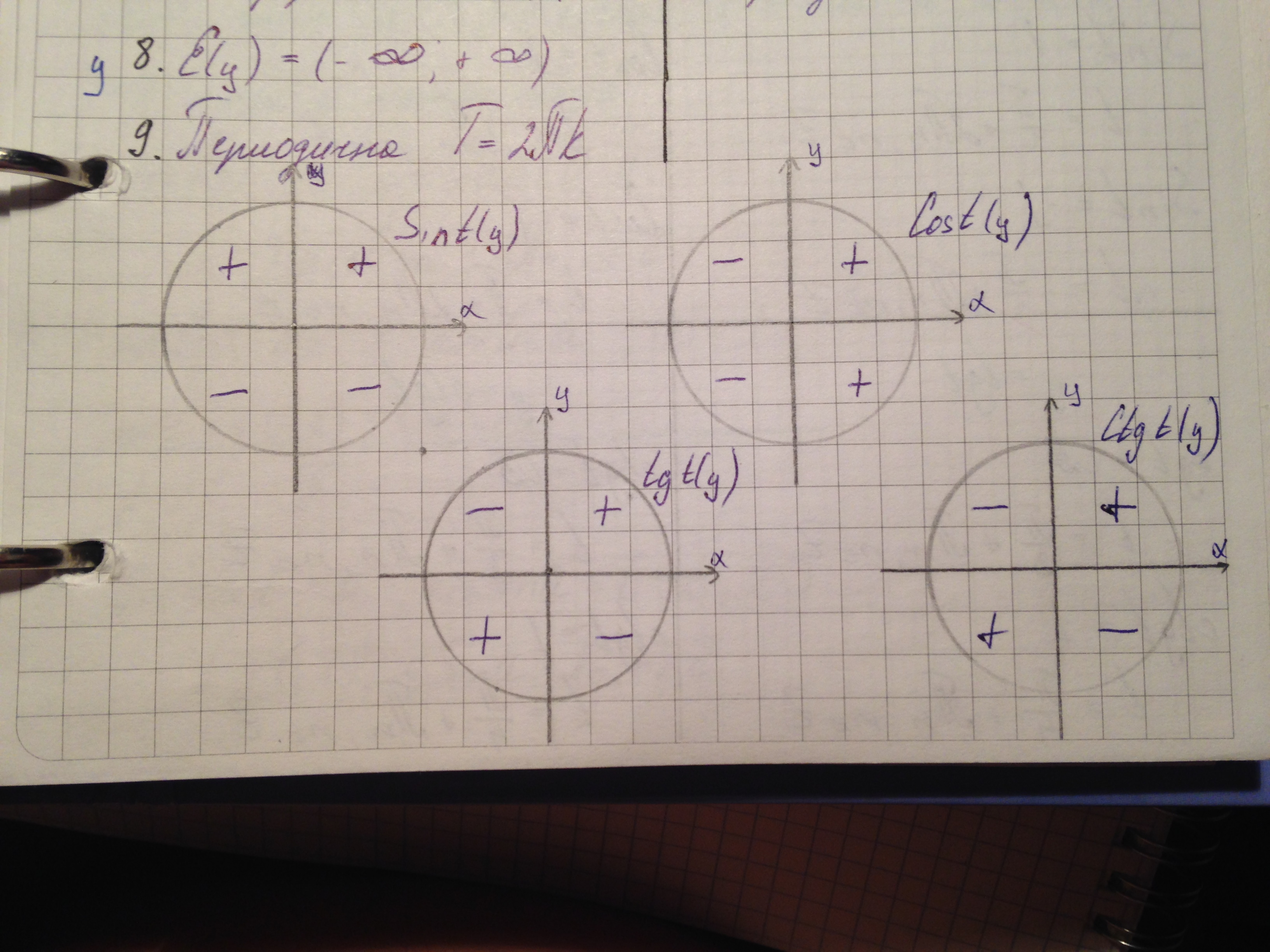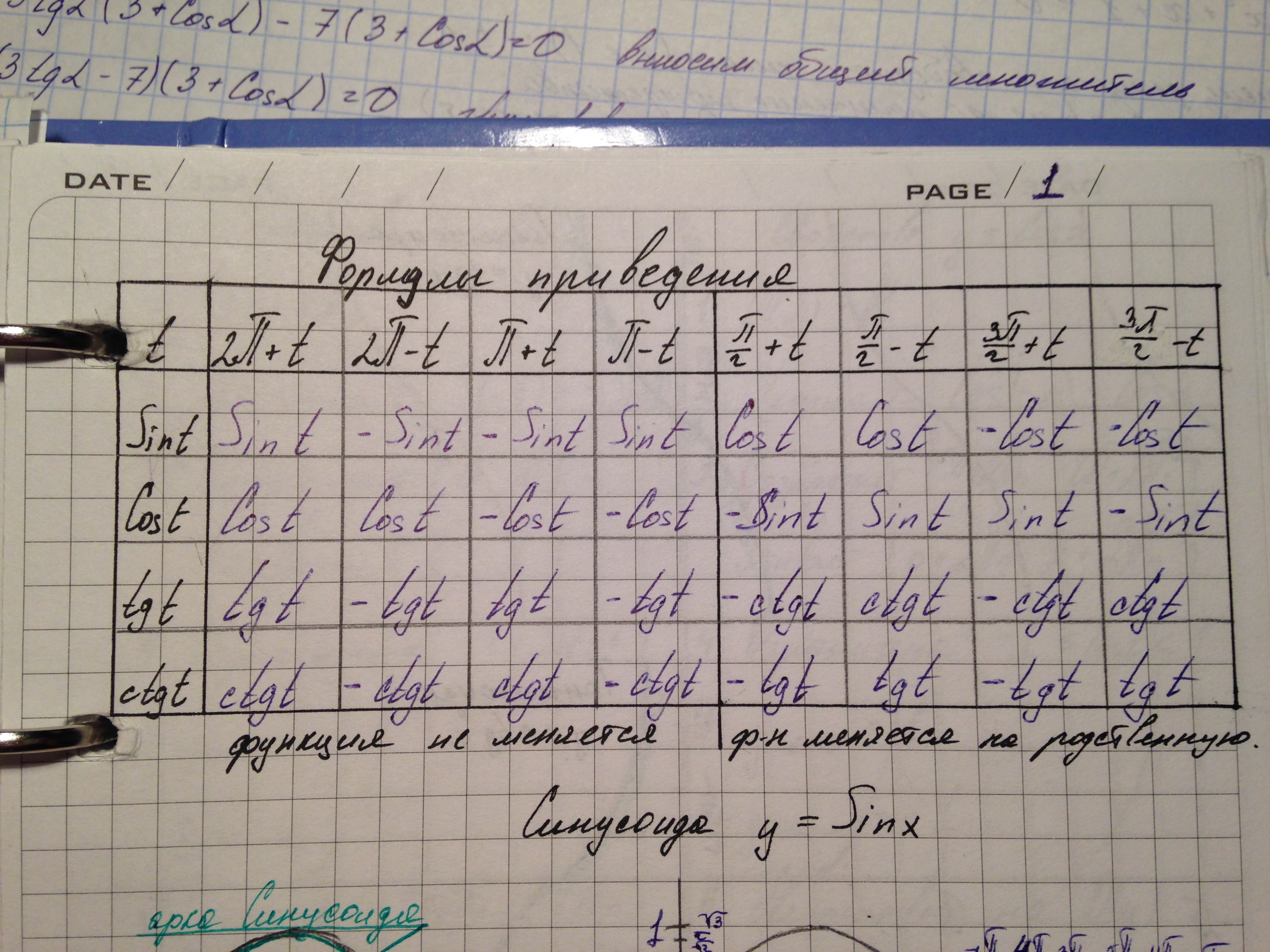 На фото: решение, формулы приведения и знаки тригонометрических функций в разных плоскостях