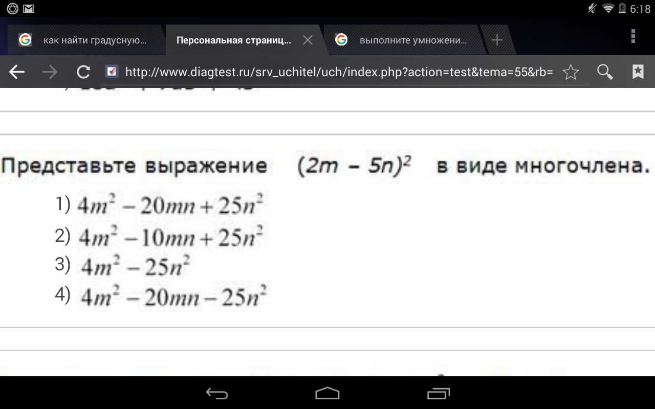 у тебя 2m=a, 5n=b ⇒ 4m²-20mn+25n²