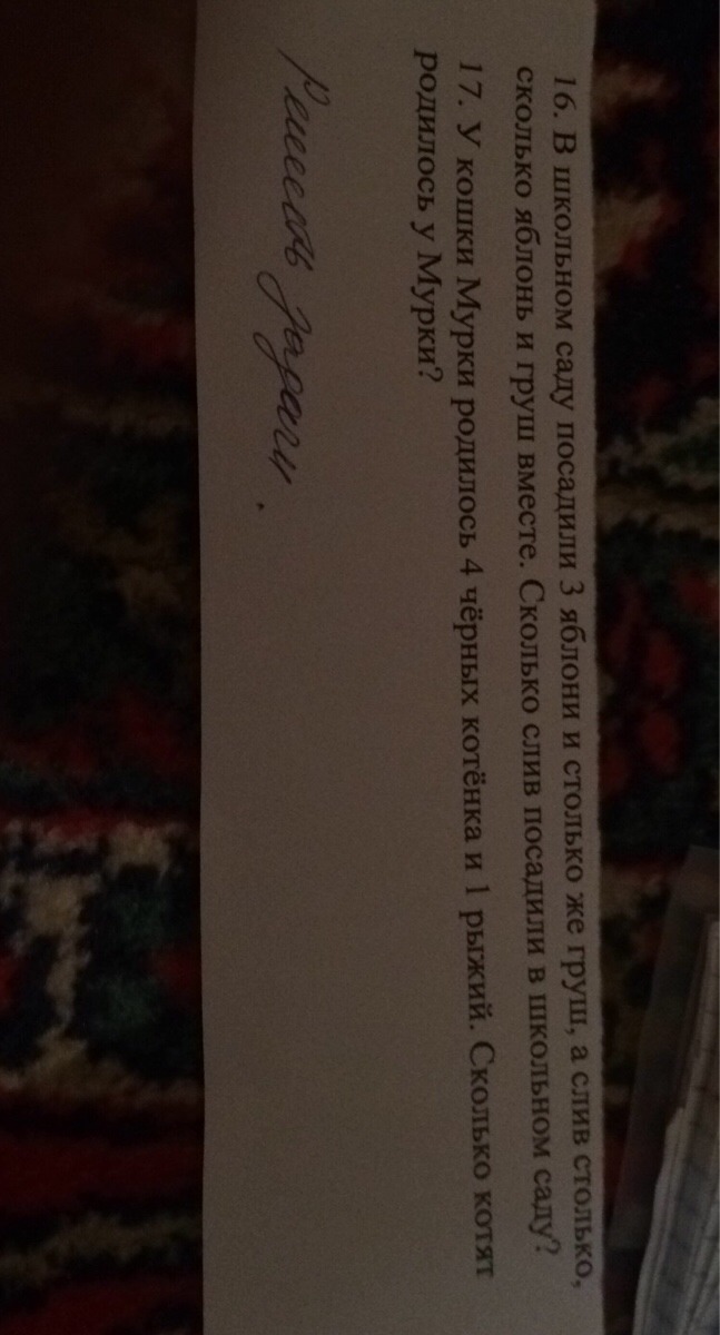 В школьном саду посадили 3 яблони и столько же груш а слив столько Сколько яблонь и груш вместе Сколько слив посадили в школьном саду?
