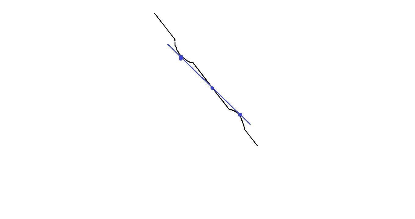синим цветом показана касательная к верхней и нижней частям парабол. В данный момент получается 3 решения.