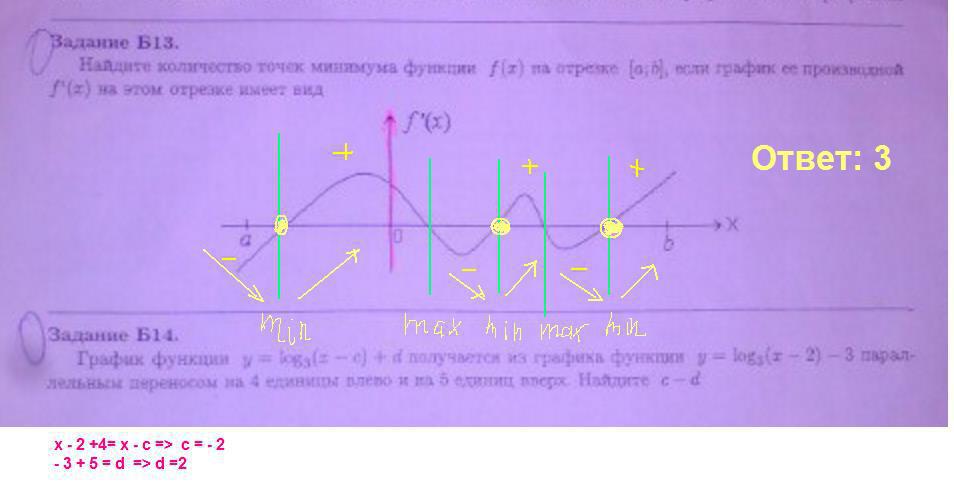 точки минимума: если производная функции меняет знак с минуса (функция убывает) на плюс (возрастает)