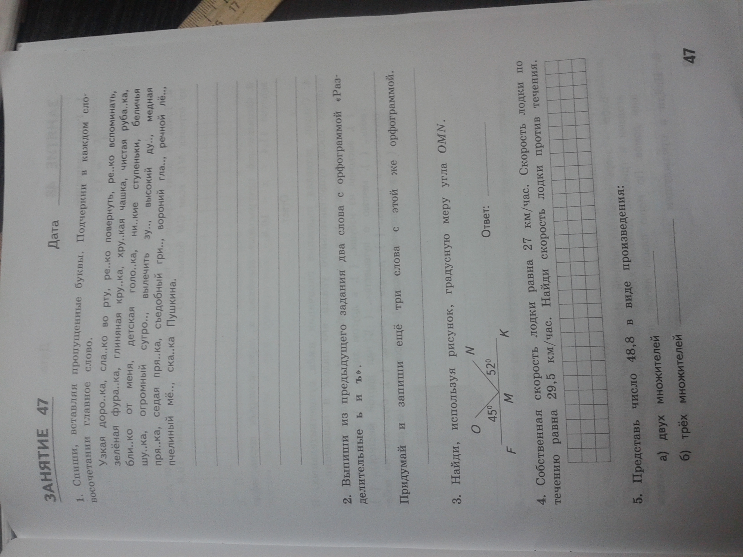 3)т.к сумма развернутого угла 180°,то ОMN=180-45-52=83