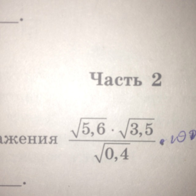 ( ( V 5,6 )•( V 3,5 ) ) / ( V 0,4 ) = V ( ( 5,6•3,5)/0,4 ) = V 49 = 7