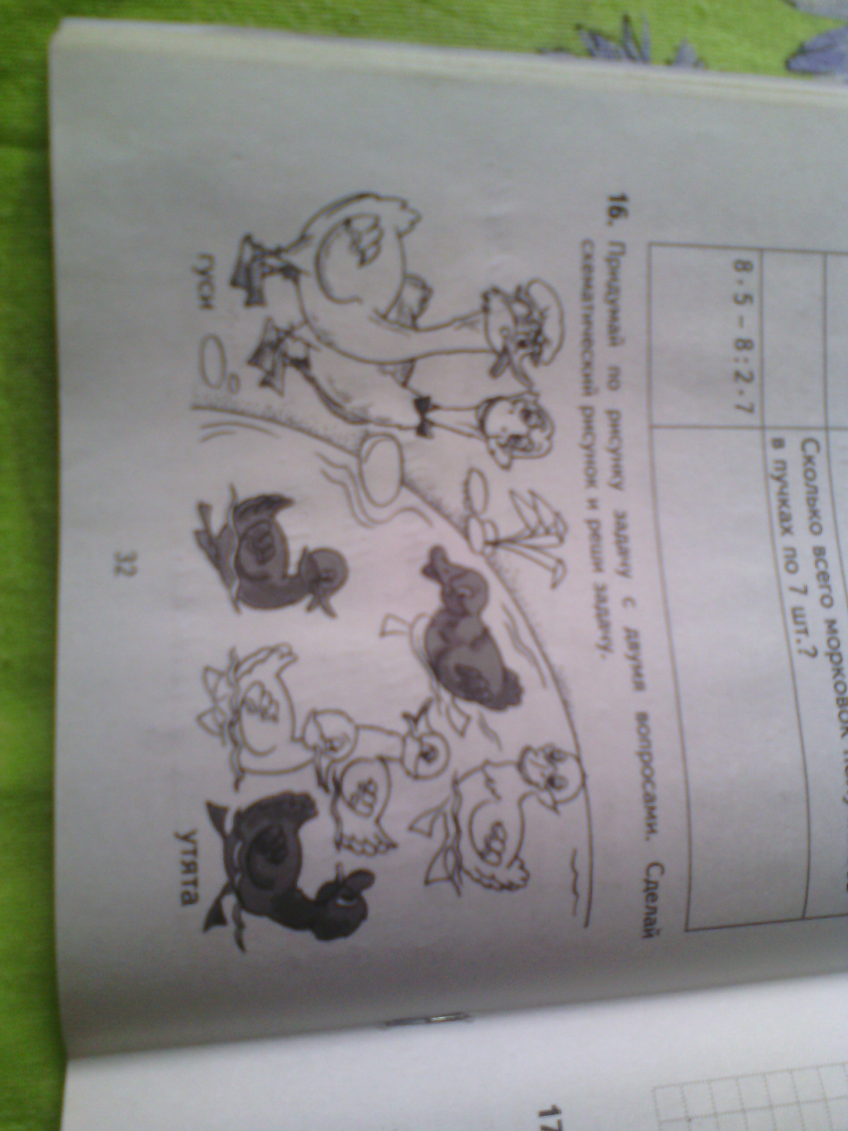 придумай по рисунку задачу с двумя вопросами.сделай схематический рисунок и решил задачу