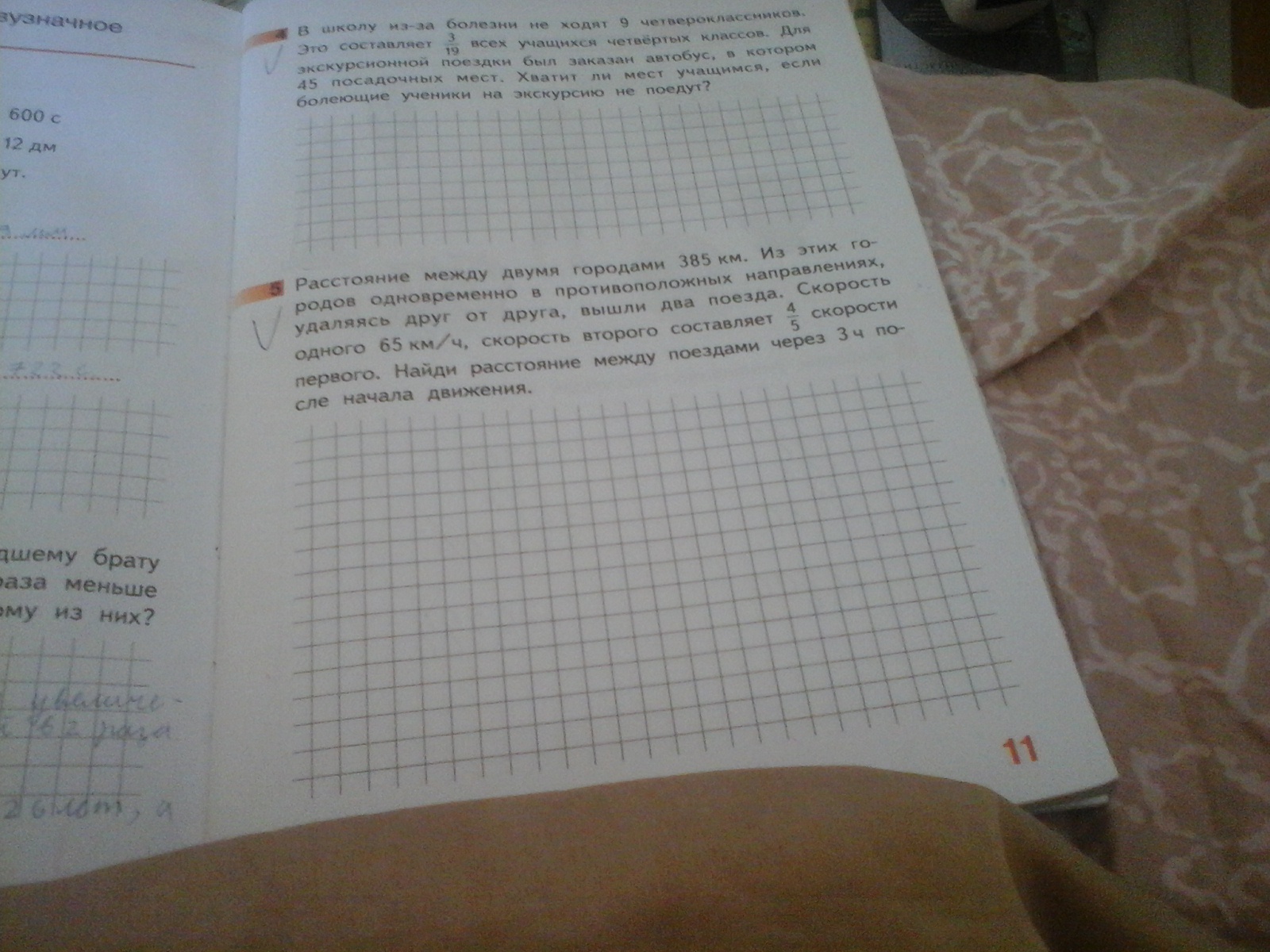 за 3 часа поезда пройдут 3*(65+52)=351 (км);