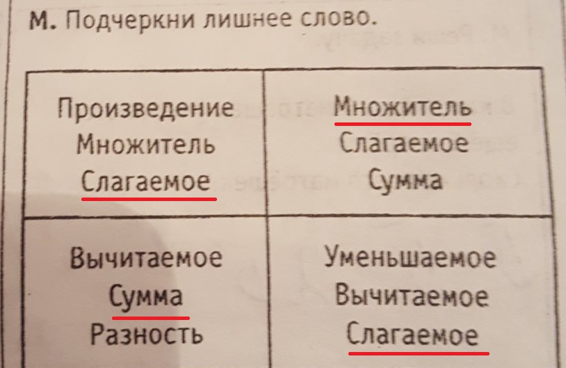 Лишнее: слагаемое - компонент сложения, остальные - компоненты произведения