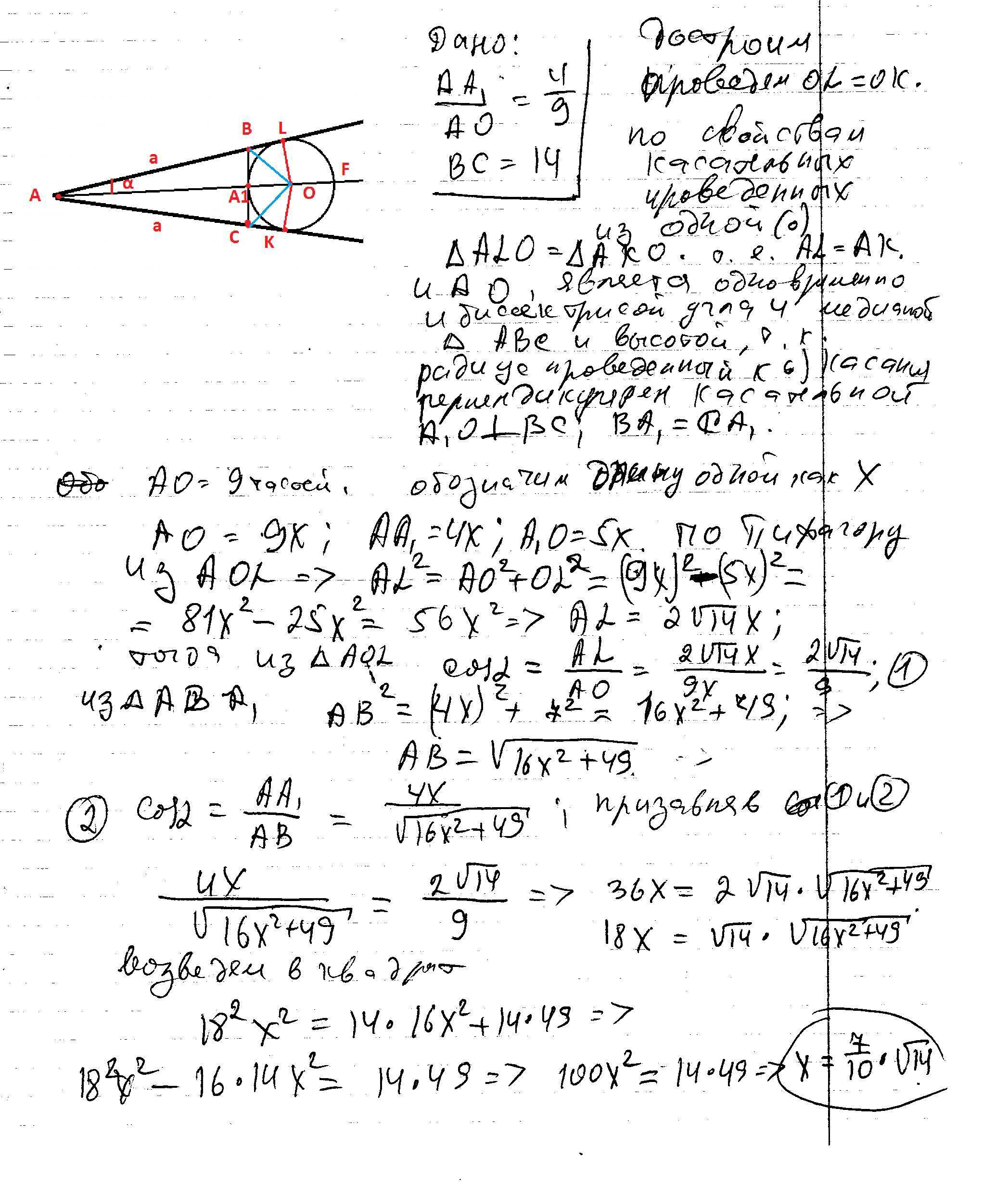 ABC,если известно, что BC=14, AA1:AO=4:9