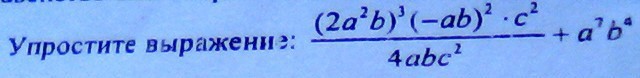 (2 ab^{2} )^3(-ab)^2c^2/ (4abc^2)  +  a^7b^4  =   frac{8a^3b^6a^2b^2c^2}{4abc^2}   +  a^7b^4  =  2a^4b^7  +  a^7b^4