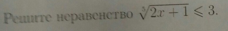 sqrt[5]{2x+1} leq 3\\2x+1 leq 3^5\\2x+1 leq 243\\2x leq 242\\x leq 121\\xin (-infty ,121, ]
