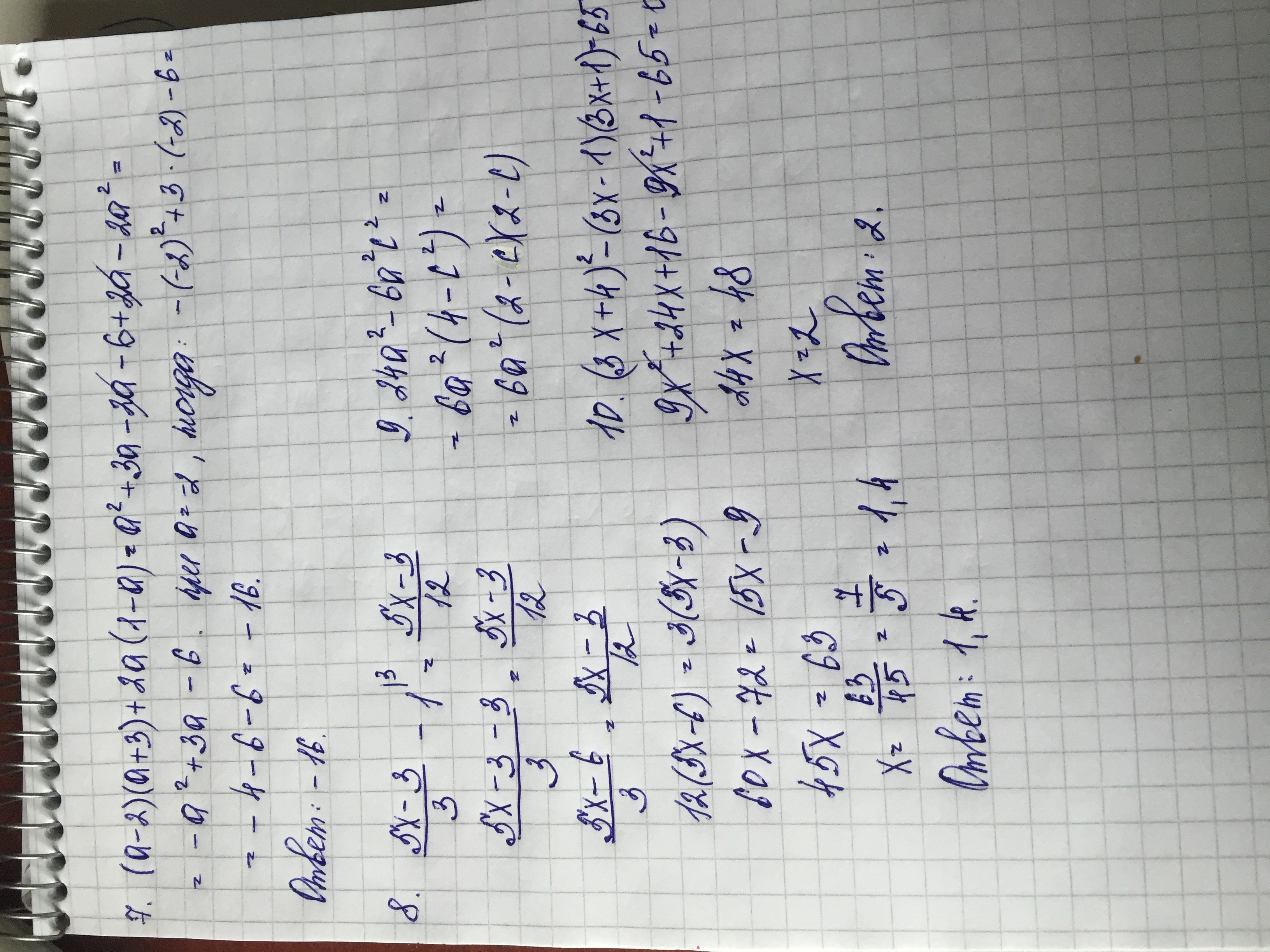 10) (3х+4)^2-(3х-1)(3х+1)=65