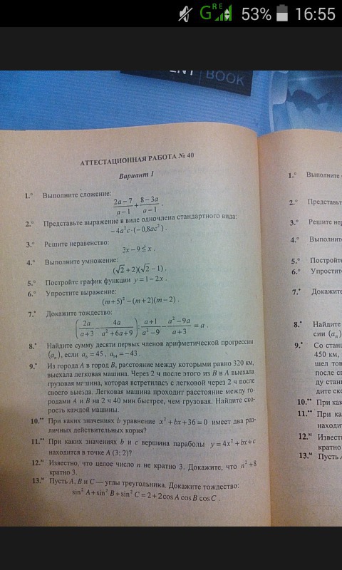 1) Ответ при простом сложении -a+1/a-1=-(a-1/a-1)=-1-вот это ответ на весь пример (смотря как надо)