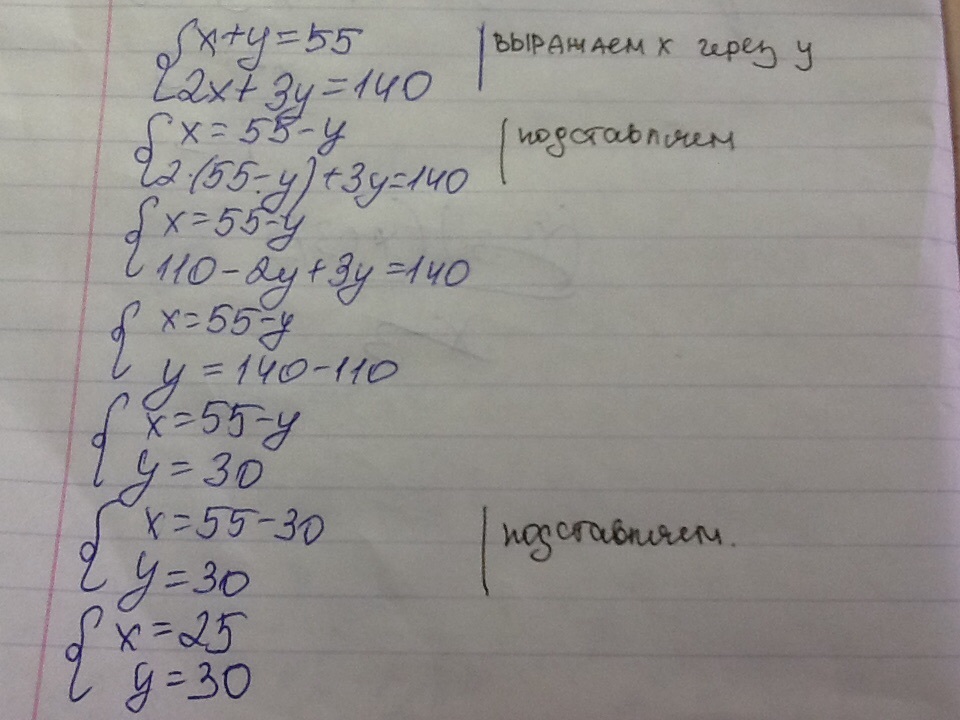 Проверяем 2*25 + 3*30 = 50+90=140. Верно.
