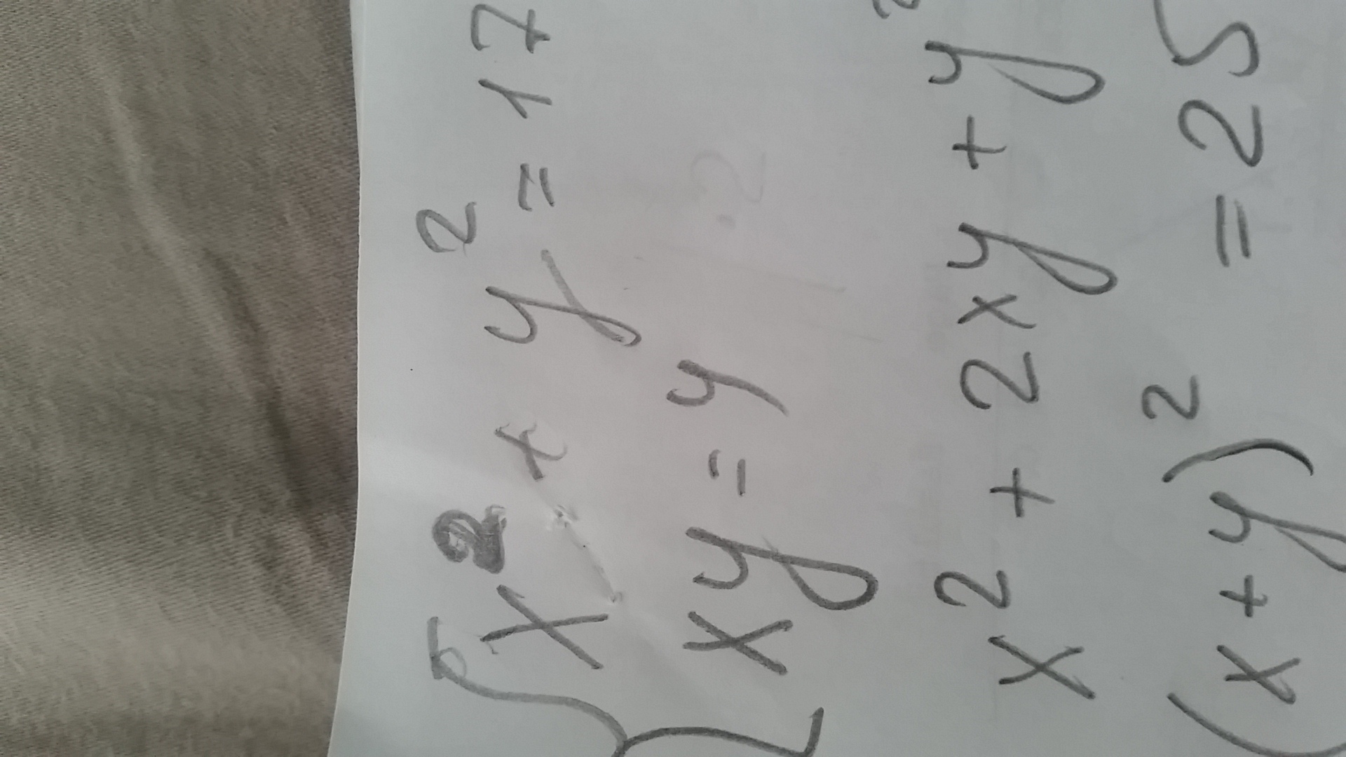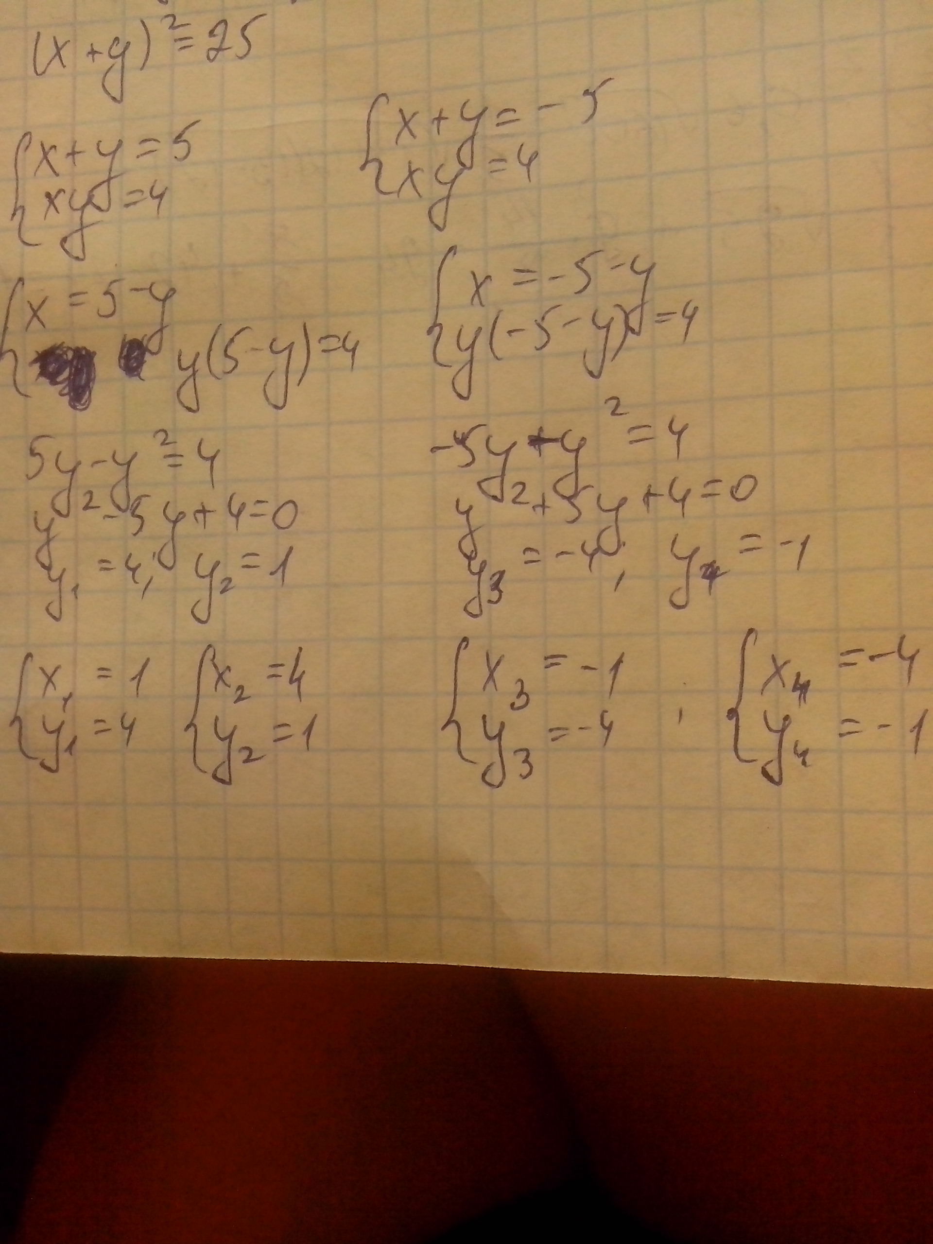 x^2+2xy+y^2=25 - это формула (а+b)^2=a^2+2ab+b^2