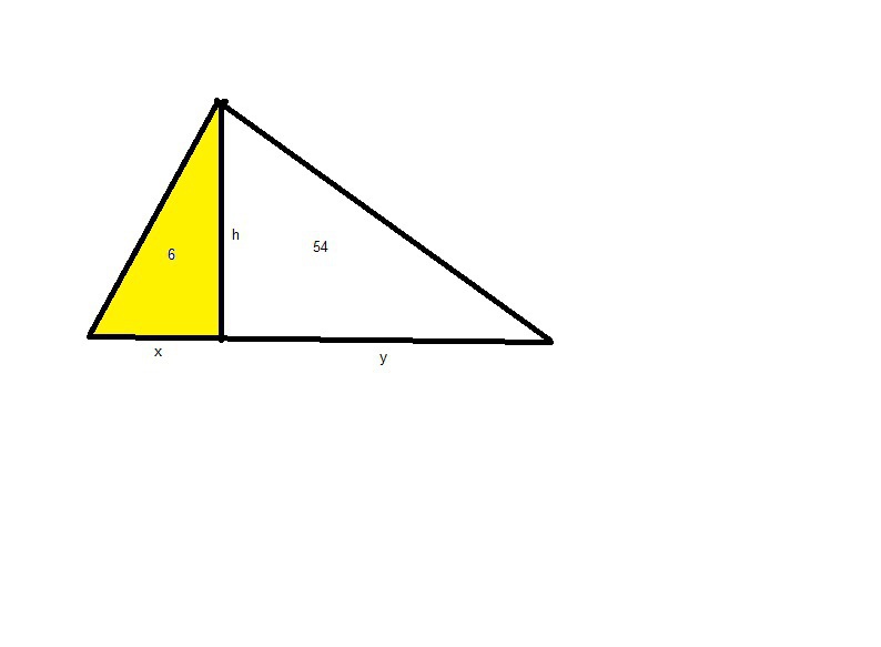 В прямоугольном треугольнике ABC на гипотенузу AB опущена высота CM . Площадь треугольника ACM равна 6 см2, а площадь треугольника – 54 см2. Найдите стороны треугольника