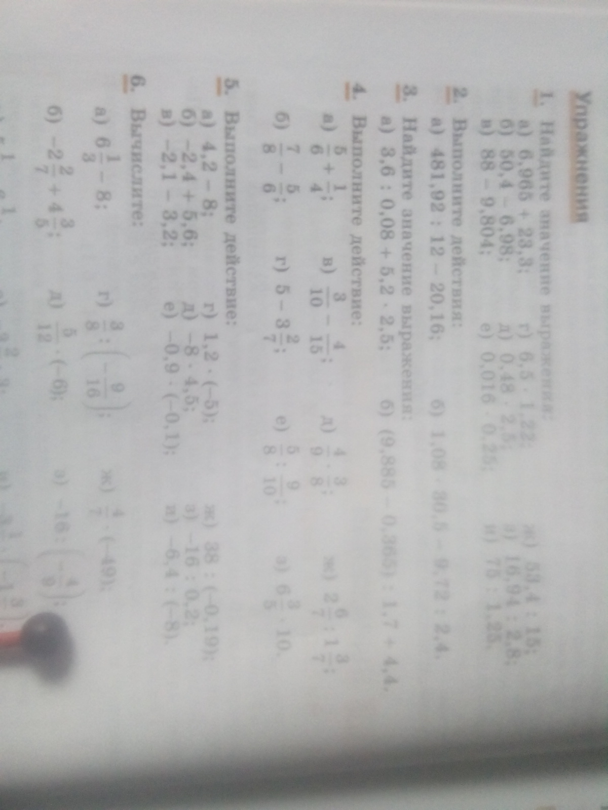 6 frac{3}{5} cdot 10= frac{6cdot 5+3}{5} cdot 10= frac{33}{5}cdot 10= frac{33cdot 10}{5}  = frac{33cdot 2cdot 5}{5}=33cdot 2=66\\2)quad star ; 4,2-8=4,2-4-4=(4,2-4)-4=0,2-4=-3,8\\star ; -2,4+5,6=-2-0,4+5+0,6=(-2+5)+(0,6-0,4)=\\=3+0,2=3,2 \\star ; -2,1-3,2=-(2+0,1+3+0,2)=-((2+3)+(0,1+0,2))=\\=-(5+0,3)=-5,3\\star ; 1,2cdot (-5)=-(1+0,2)cdot 5=-5-1=-6