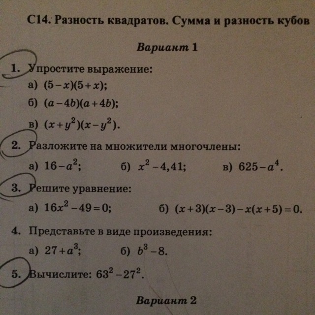 в)(25+а²)(5-а)(5+а)