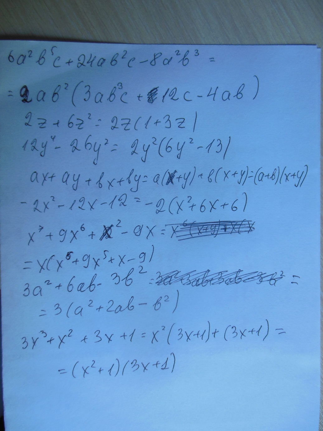 1)6a^2b^5c+24ab^2c-8a^2b^3