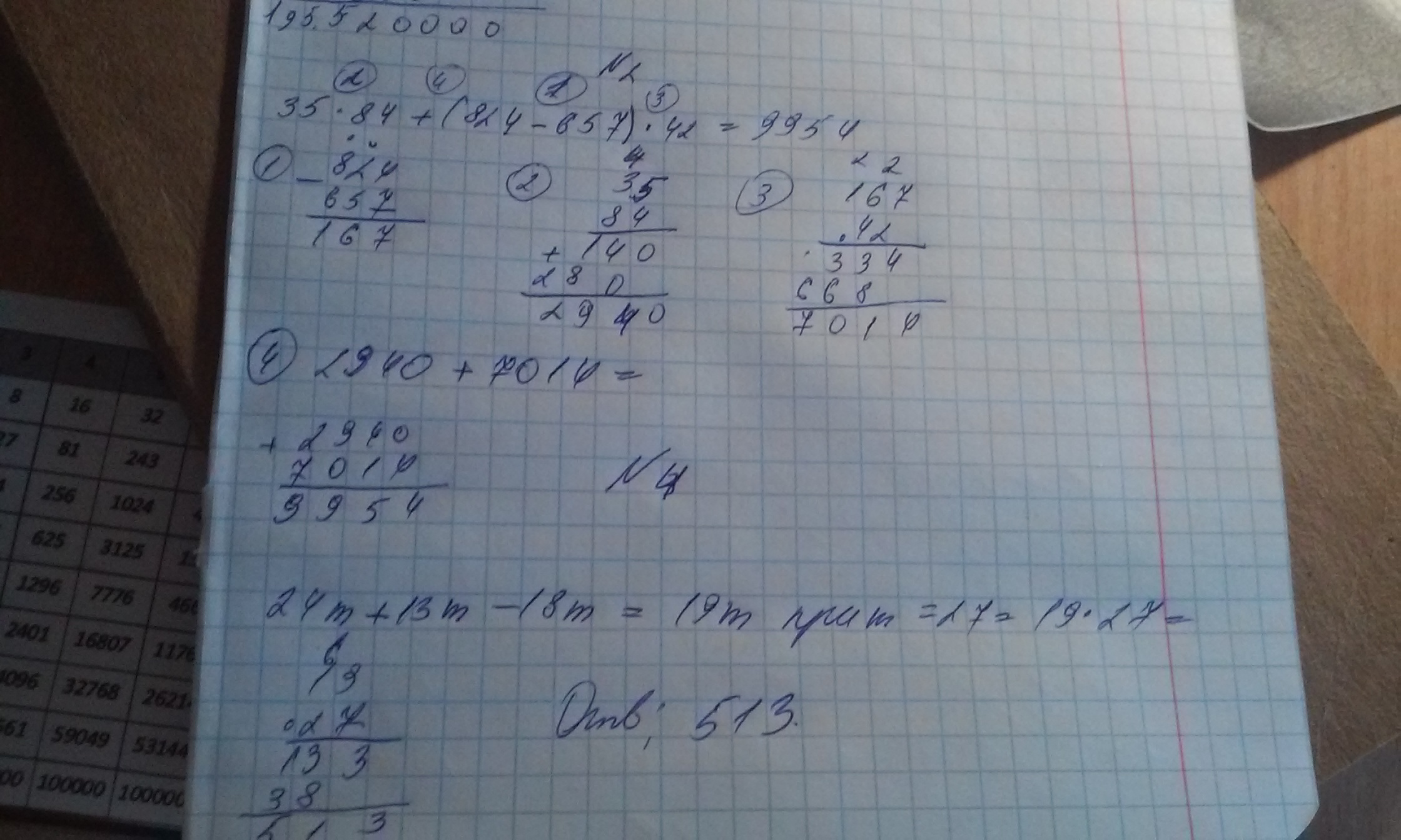№4.24m+13m- 18m=19m,если m=27, то 19·27=513