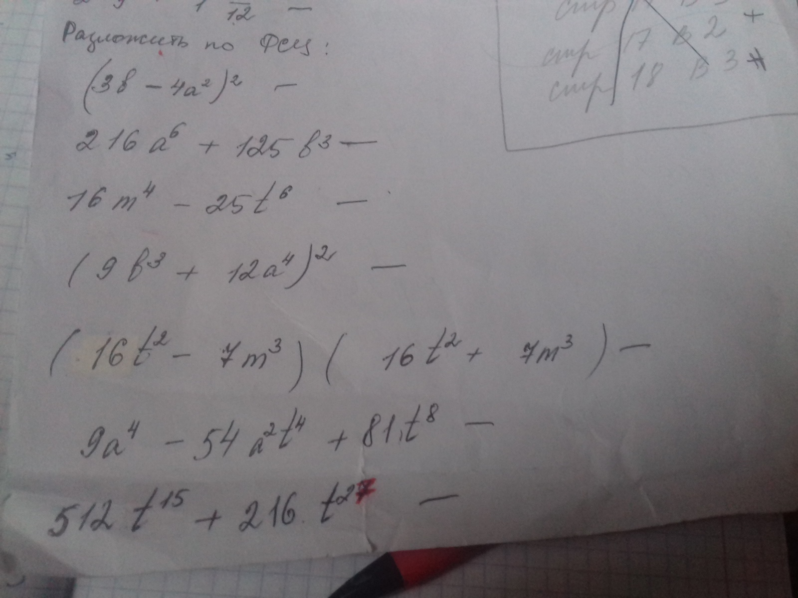 512t¹⁵+216t²⁷ = (8t⁵+6t⁹)(64t¹⁰-48t¹⁴+36t¹⁸).