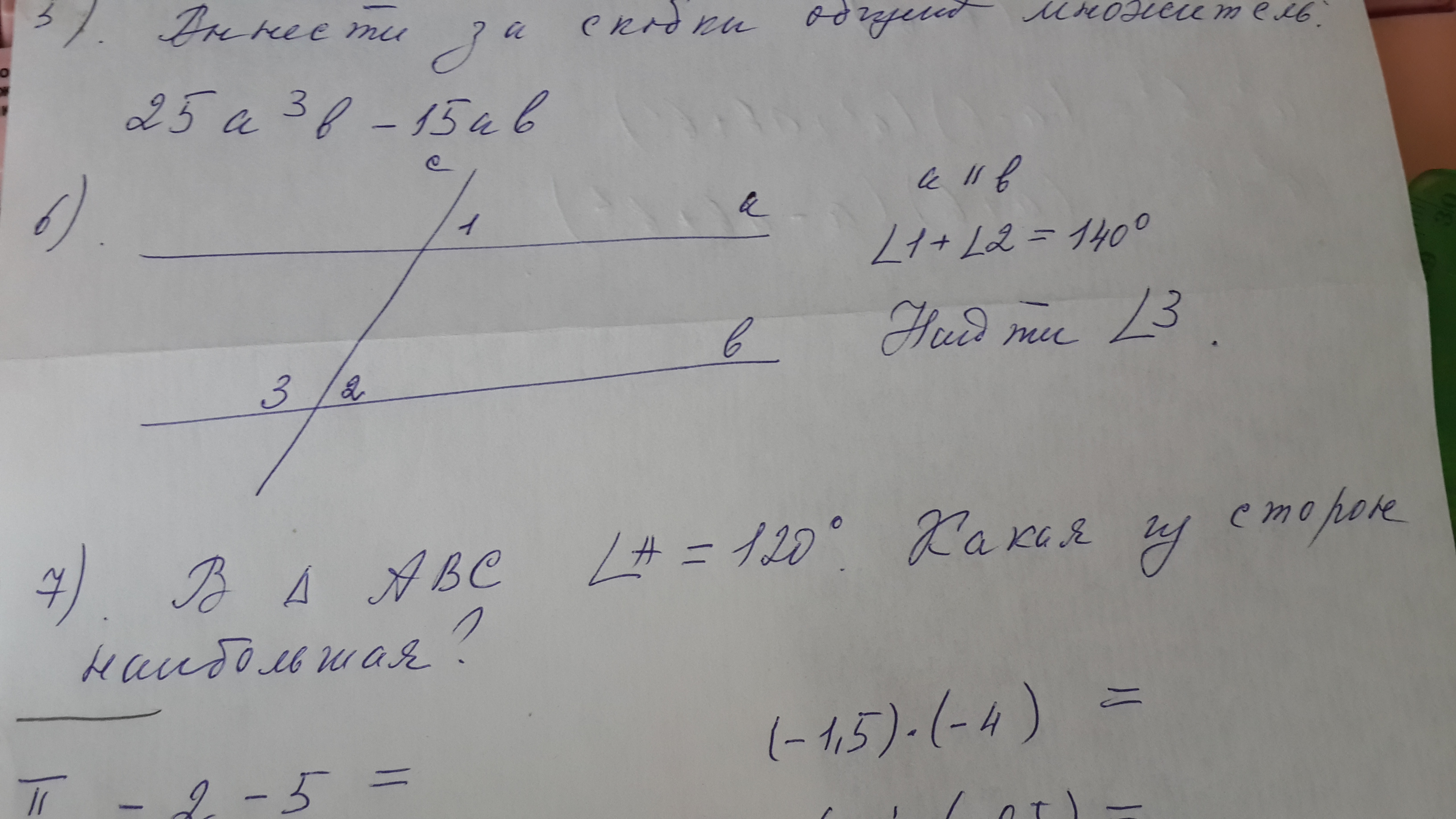 3) ∠ 3 = 180° - 70° = 110 ° ( углы 2 и 3 смежные).