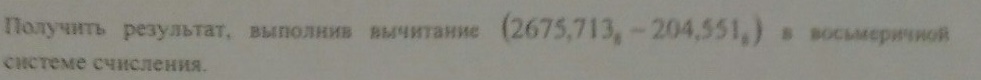 Подробности. Вычитание производим "в столбик", начиная с самого правого разряда. Если в разряде уменьшаемое не меньше вычитаемого, выполняем вычитание в привычной десятичной системе. 3₈ - 1₈ = 2₈