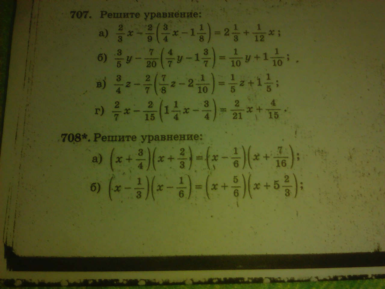 708,а) (х+3/4)(х+2/3)=(х-1/6)(х+7/16),