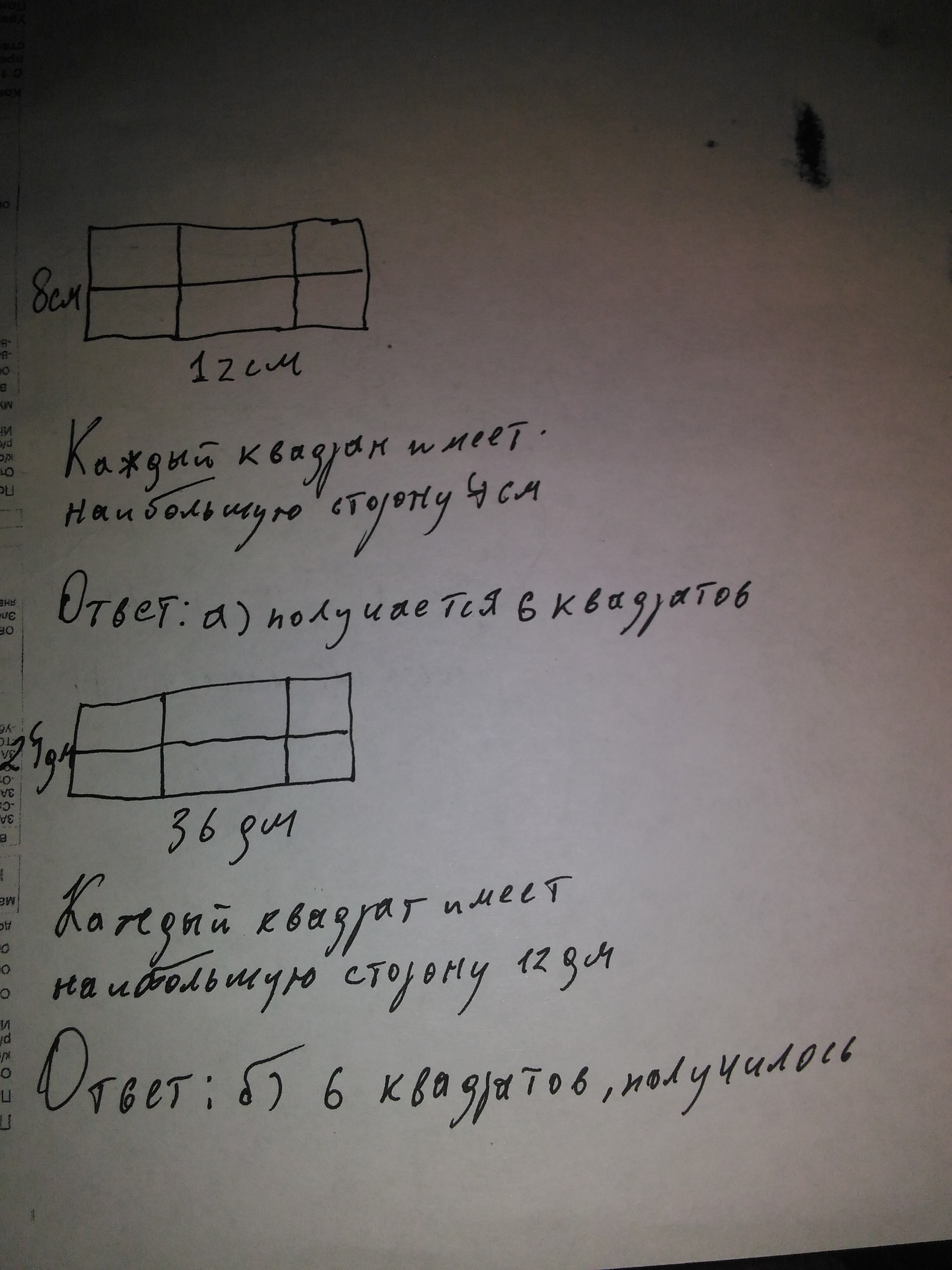2) 24 см и 36 см. Наибольший общий делитель 12.