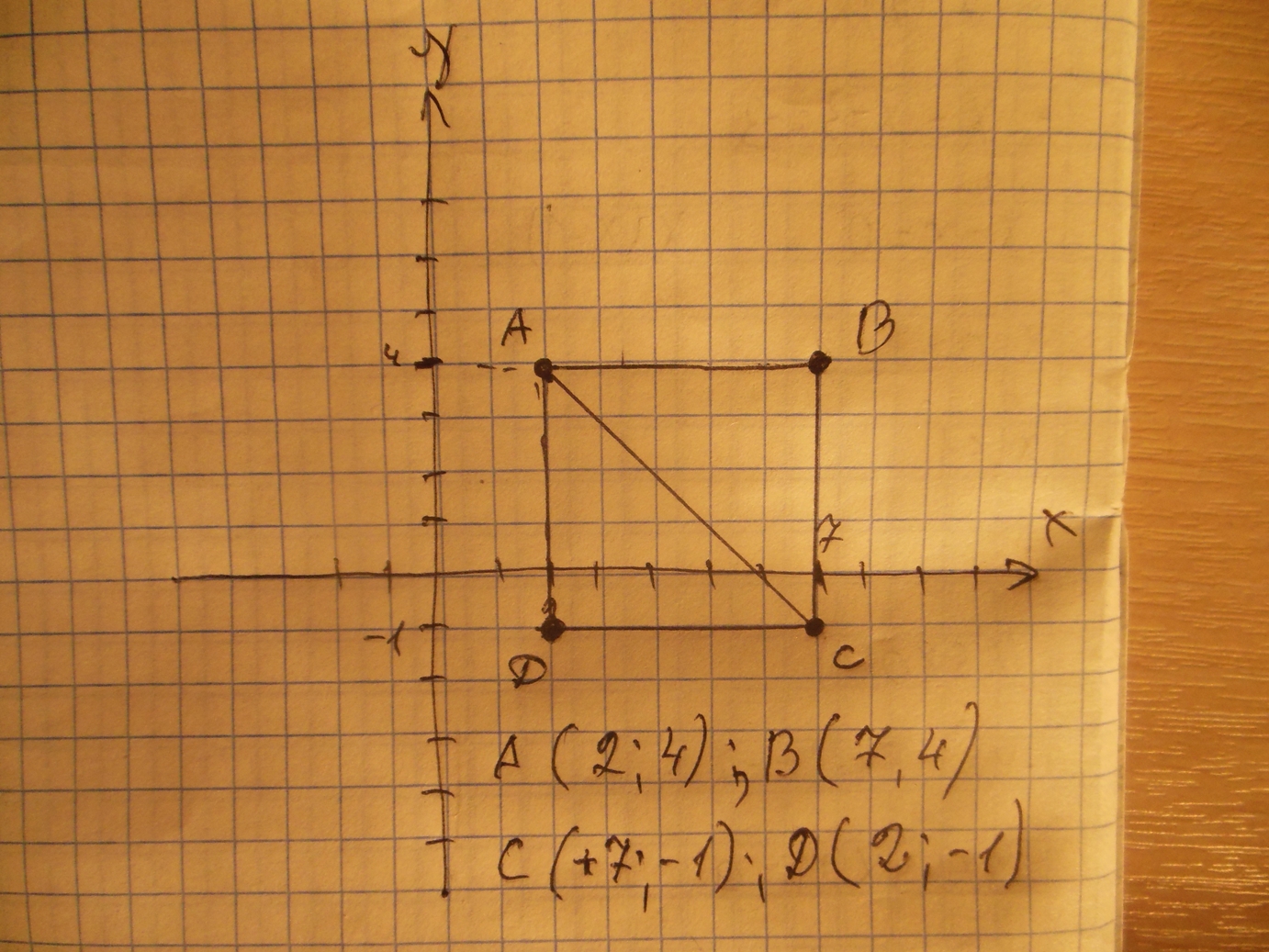 На координатной плоскости отметьте точки А ( 2;4) и С (7; - 1).Изобразите квадрат,диагонально которого служит отрезок Ас.Найдите координаты вершин квадрата.