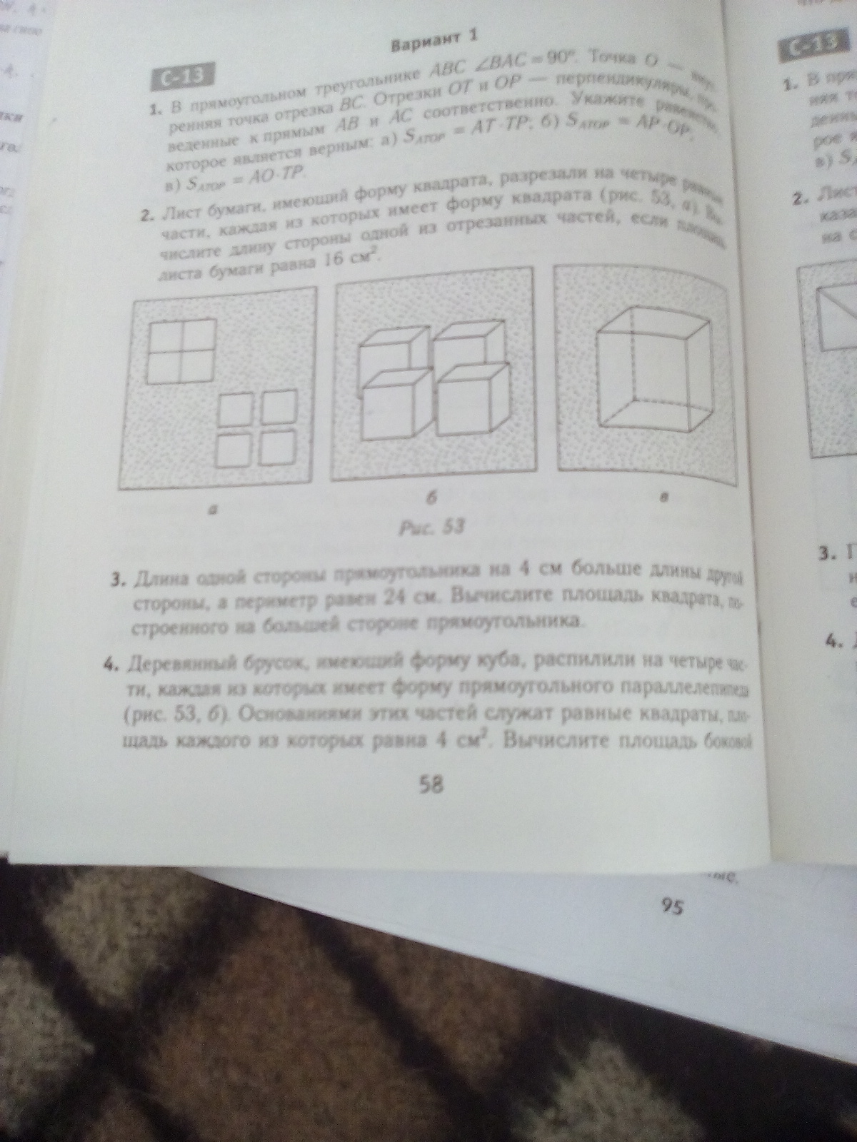 Задание 4.последнее предложение не вместилось.Вычислите площадь боковой поверхности полученной модели прямоугольного параллелепипеда (рис.53,в).помогите пожалуйста.