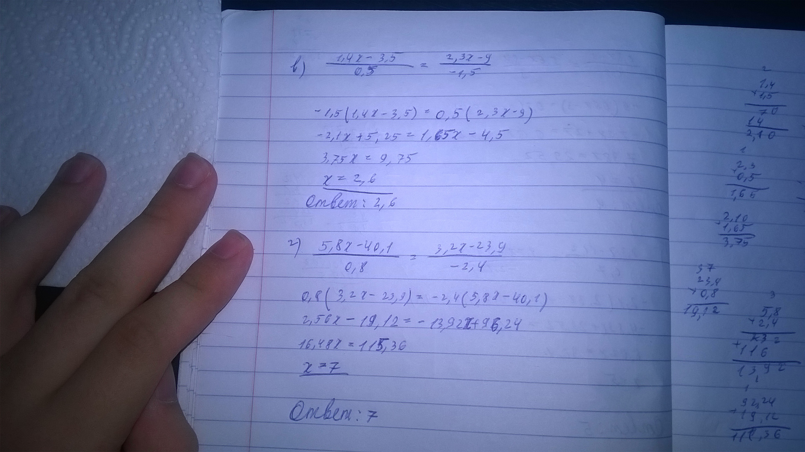 г) 5,8х - 40,1 / 0,8 = 3,2х - 23,9 / -2,4