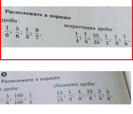 сравниваем числители полученных дробей и располагаем исходные в порядке убывания