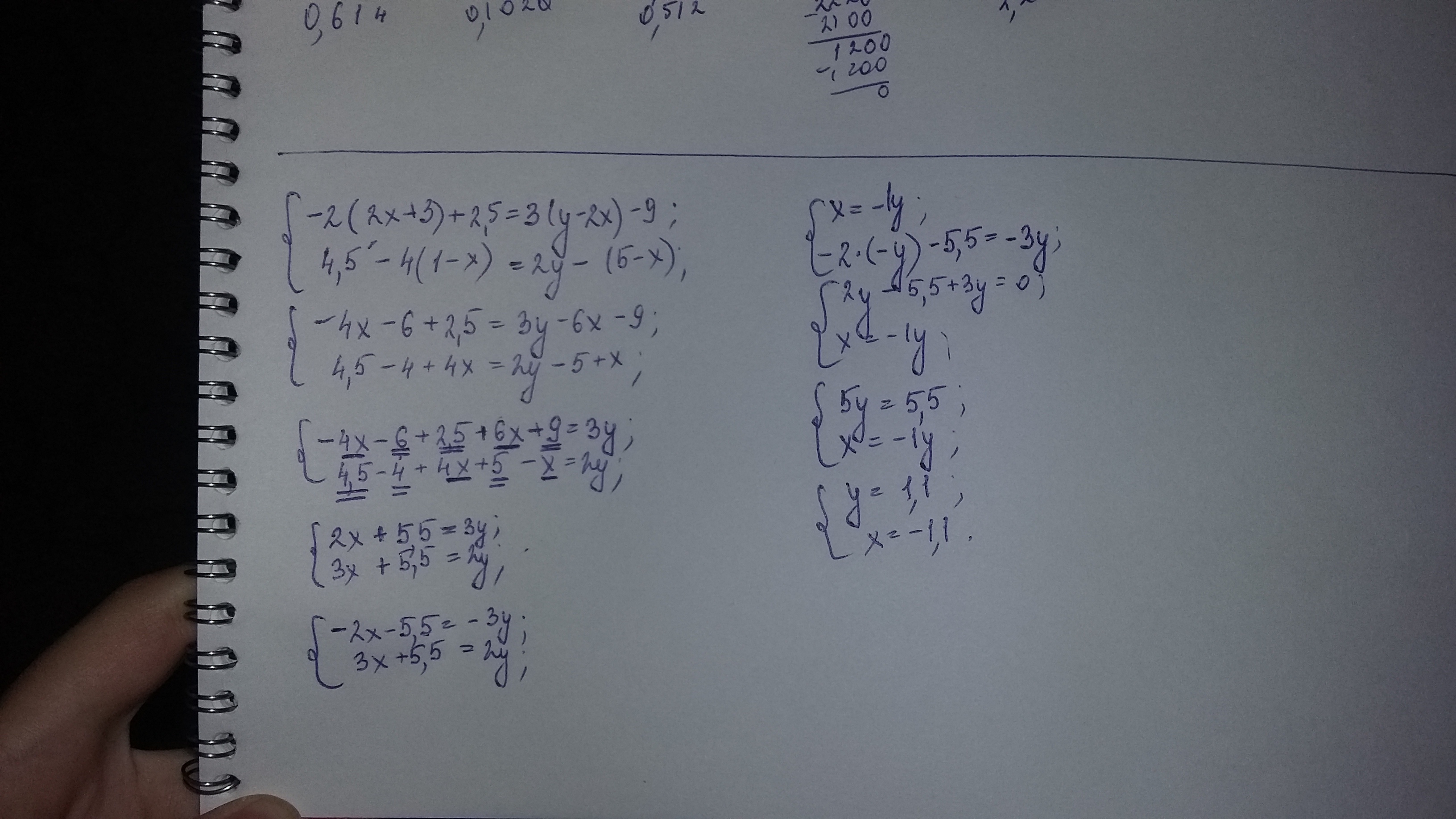 -5у=-5,5 2х-3*1,1=-5,5