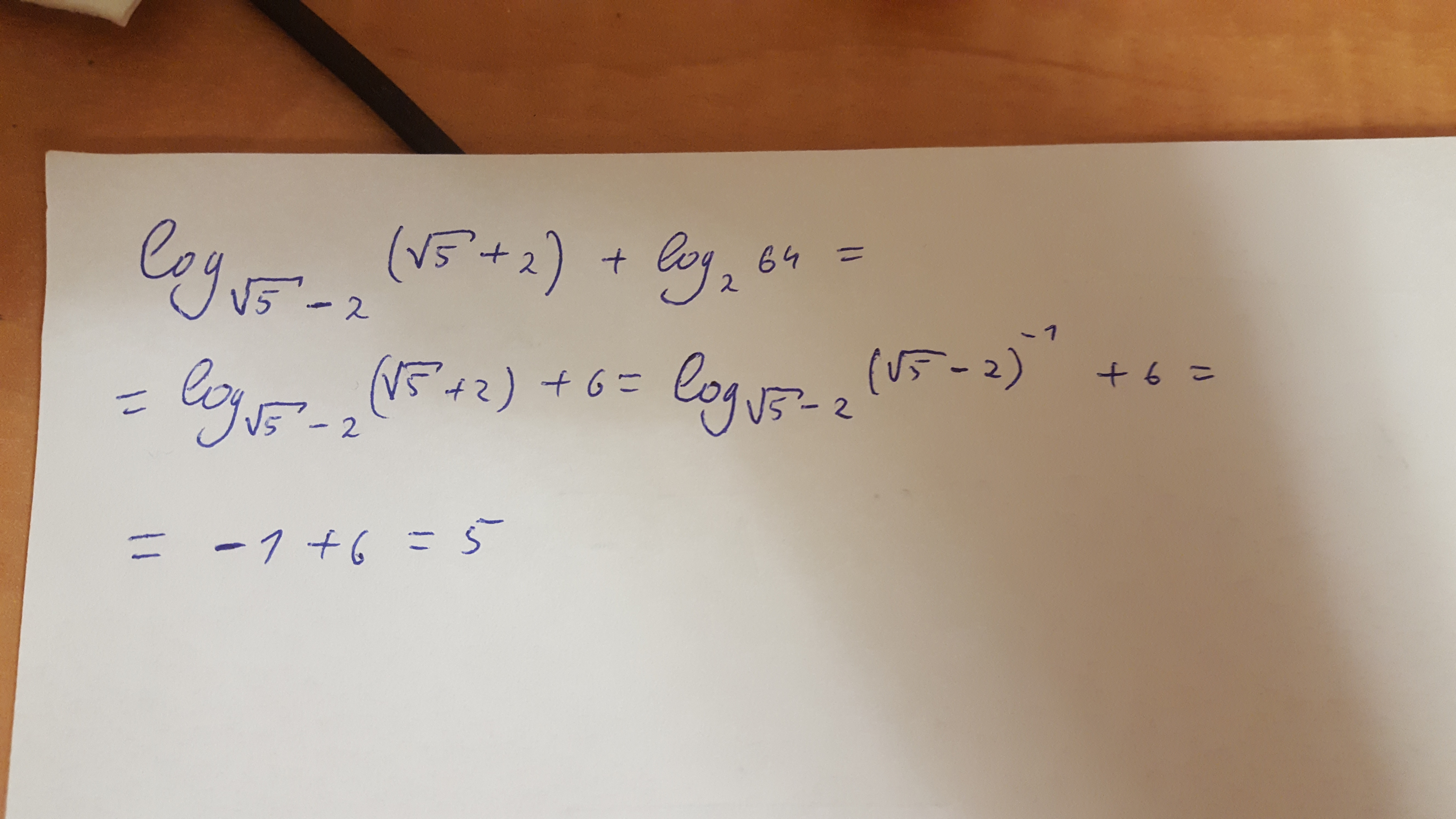 найдите значение выражения log_#5 - 2 (#5 + 2) + log_2 (64)