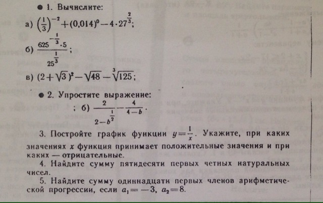 1. а) (1/3)^(-2)+(0,014)^0-4*27^2/3=3^2+1-4*корень 3 степени из 27^2=9+1+корень 3 степени из 729=9+1+4*9=9+1+36=46