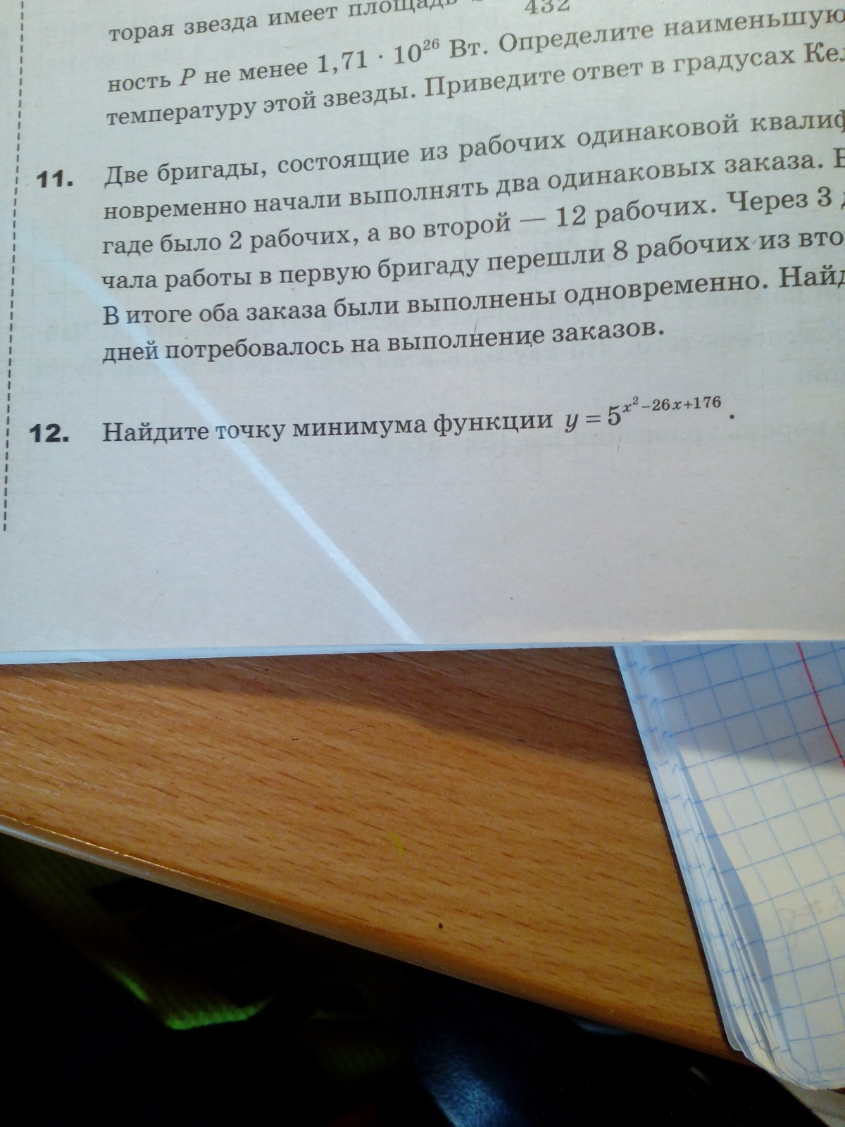 Наименьшее значение функция принимает при минимальном значении показателя. Так как x²-26*x+176=(x-13)²+7, то очевидно, что наименьшее значение показателя 7 достигается при x=13. Ответ: x=13.