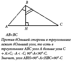 ДВЕ СТОРОНЫ ТРЕУГОЛЬНИКА НЕ РАВНЫ ДРУГ ДРУГУ .ДОКАЖИТЕ ЧТО ВЫСОТА ПРОВЕДЕННАЯ ИЗ ИХ ОБЩЕЙ ВЕРШИНЫ ОБРАЗУЕТ С БОЛЬШЕЙ ИЗ ЭТИХ СТОРОН БОЛЬШИЙ УГОЛ