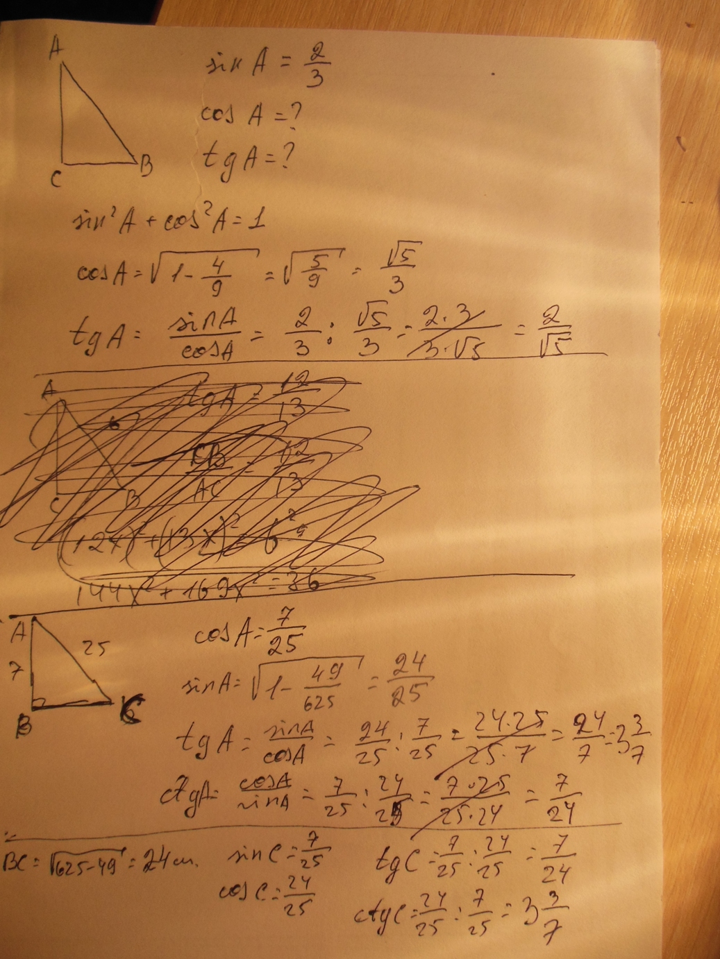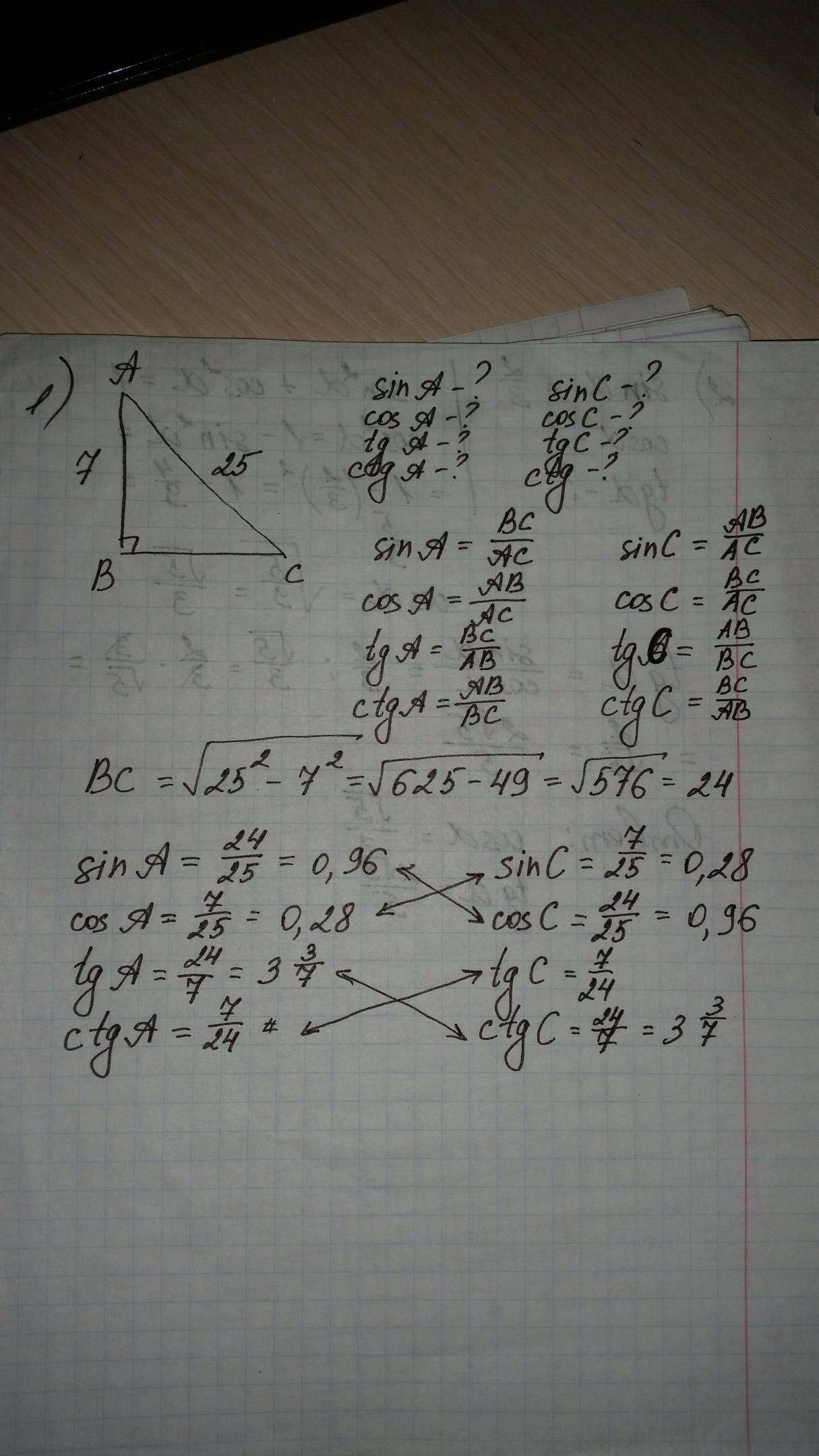 А еще один момент: синусы и косинусы, тангенсы и котангенсы противоположных углов равны (нарисовал стрелочки, чтобы было нагляднее)