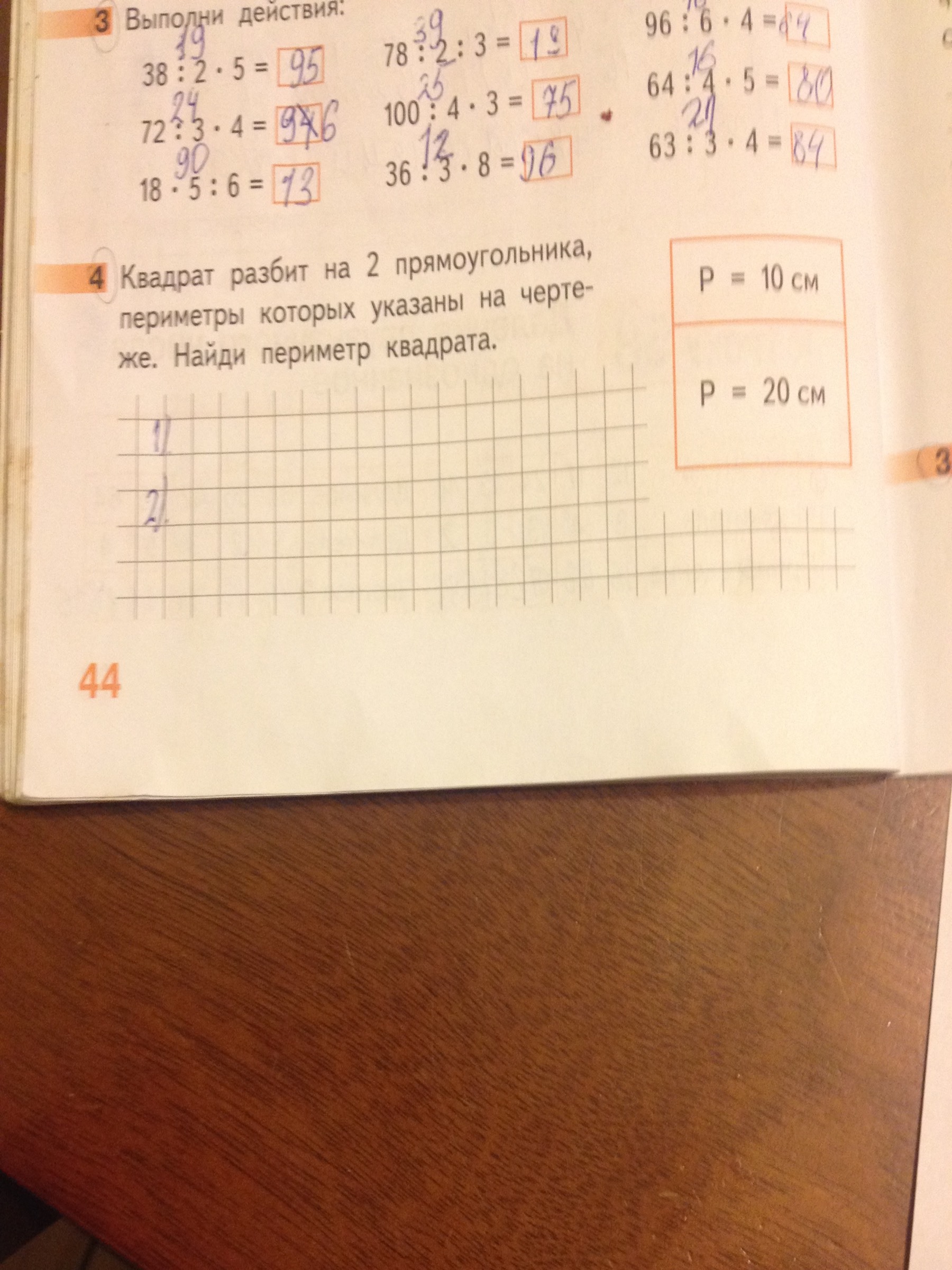 Квадрат разбит на 2 прямоугольника периметр одного 10 см второго 20 см найти периметр квадрата