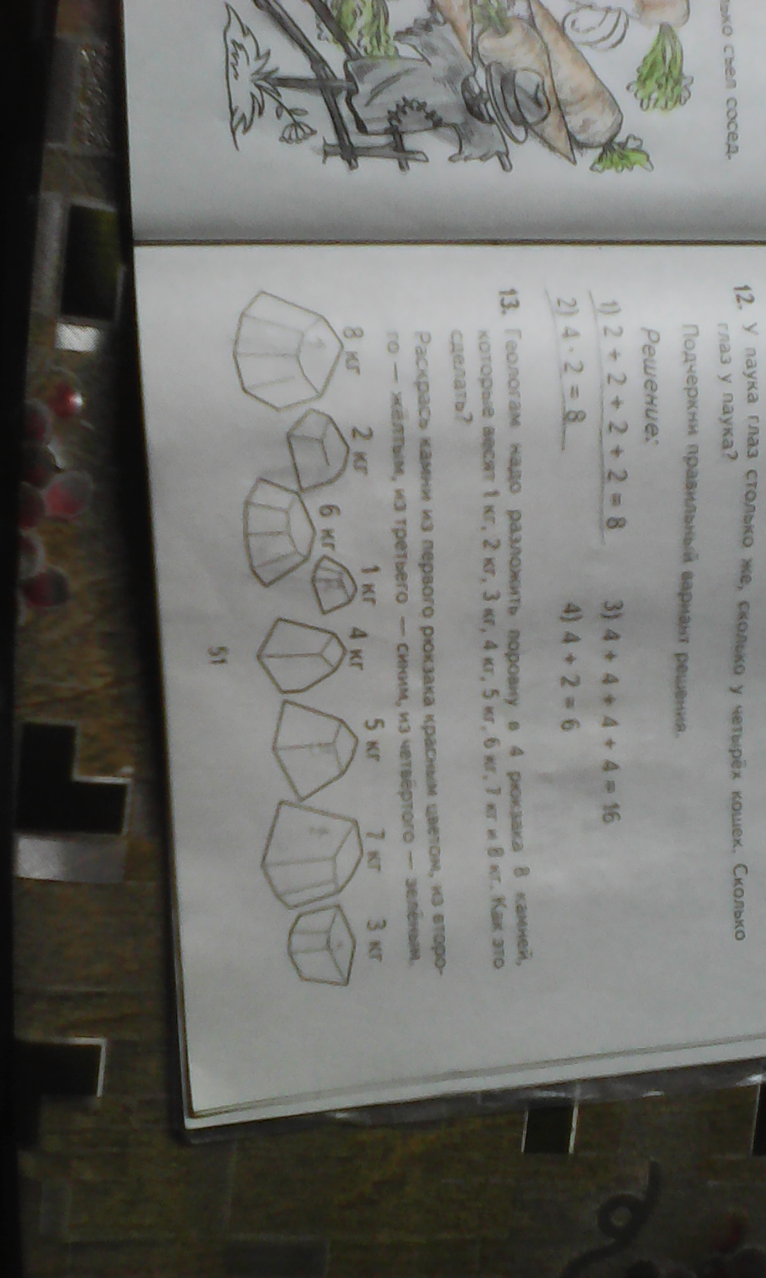 надо разложить поровну в 4 рюкзака в 8 камней которые весят 12345678 килограмм как это сделать