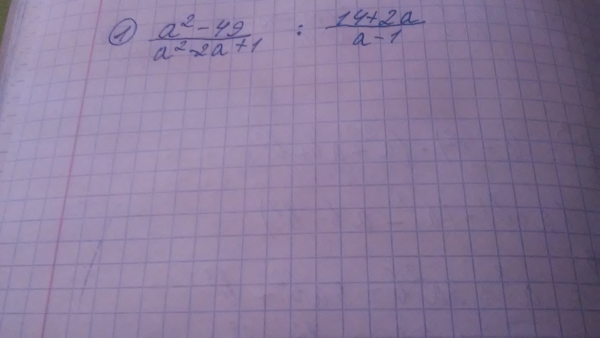 frac{frac{a^2-49}{a^2-2a+1}}{frac{14+2a}{a-1}}=frac{(a-7)(a+7)}{(a-1)^2}*frac{a-1}{2(7+a)}=frac{(a-7)}{(a-1)}*frac{1}{2}=frac{a-7}{2a-2}